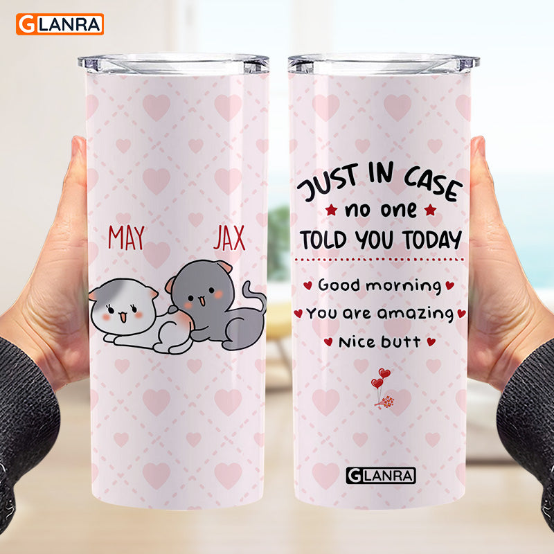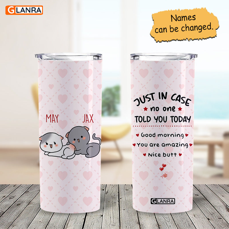 Personalized Just In Case No One Told You Today Skinny Tumbler, Custom Couple Glitter Water Bottle, Stainless Steel Tumbler, Metal, Insulated