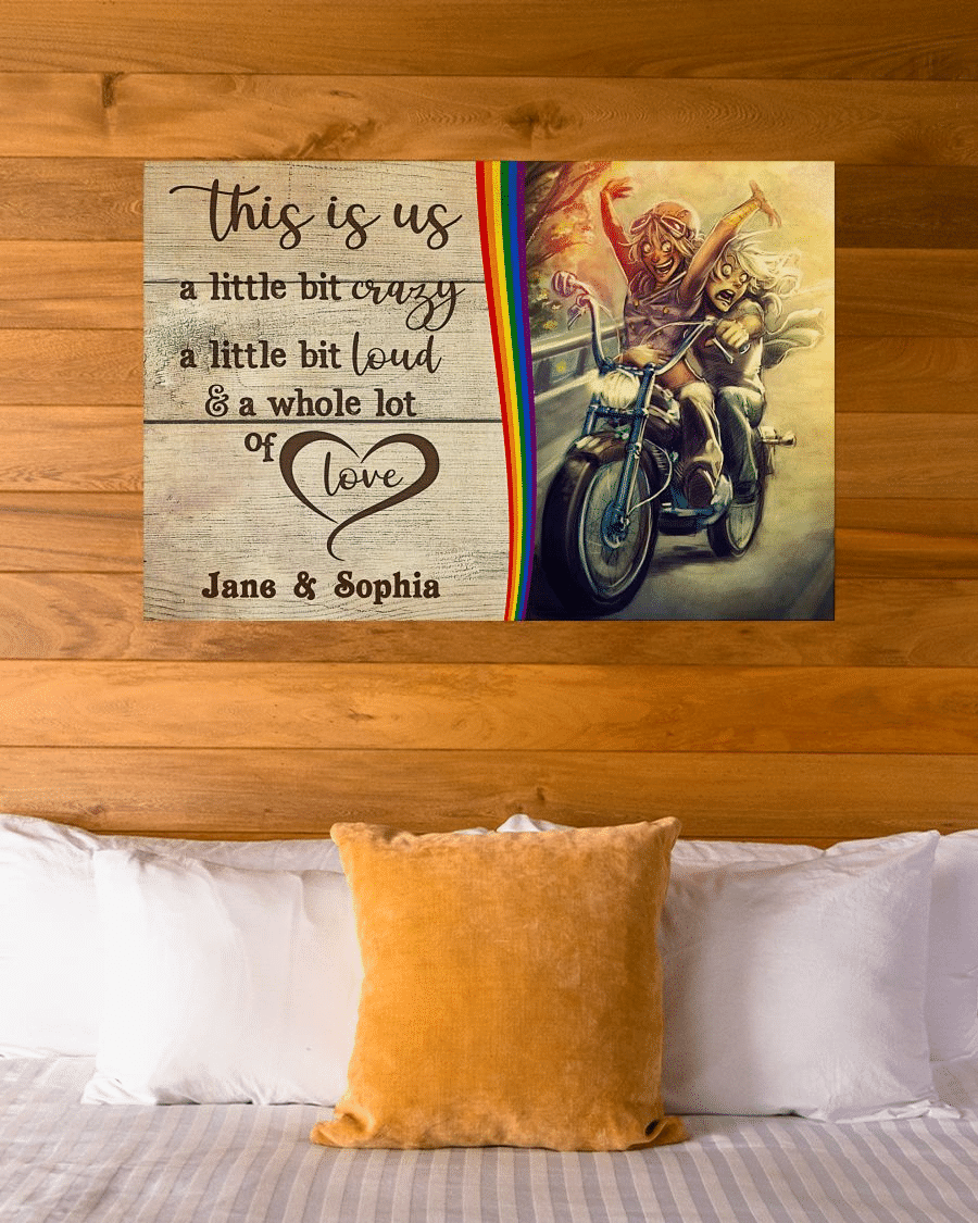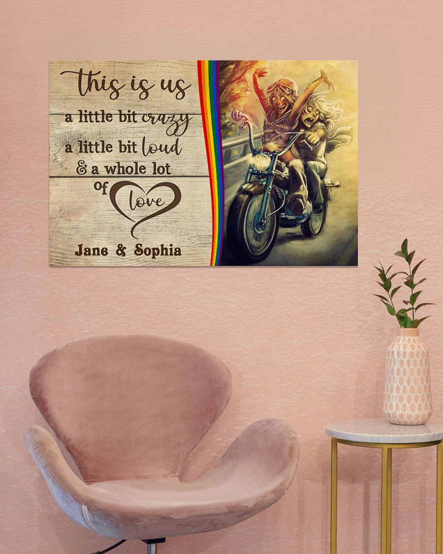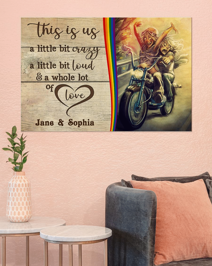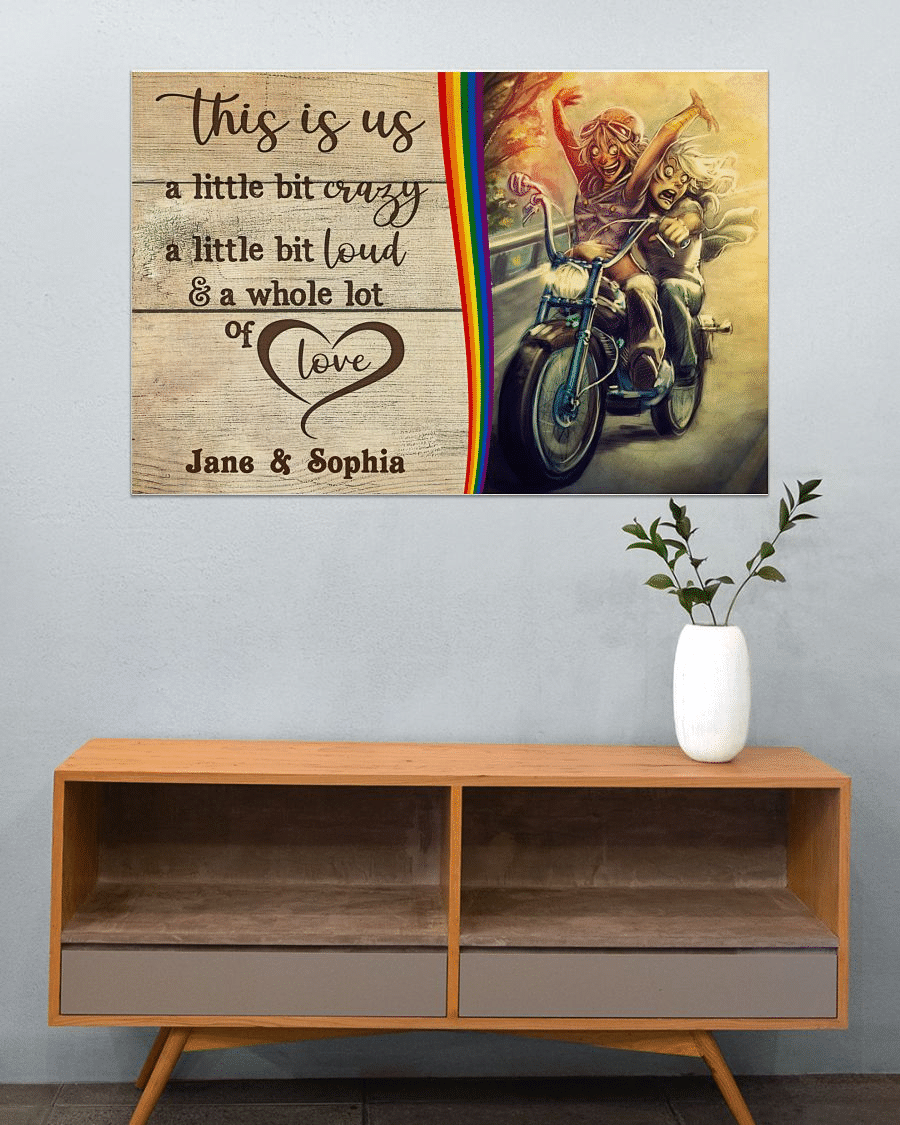 So whether you're looking to show off your own name or create a personalized gift for someone special, LateAndLow Store has got you covered. Start designing your own custom Personalized Lesbian Couple Motorcycle This Is Us Horizontal Poster TY320006 print-on-demand product today, and let us bring your vision to life!