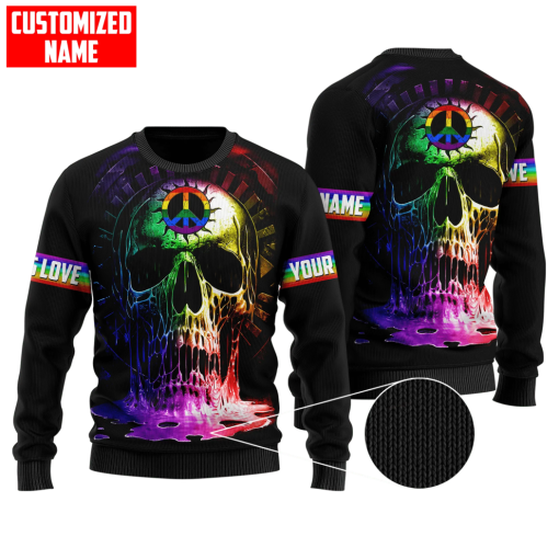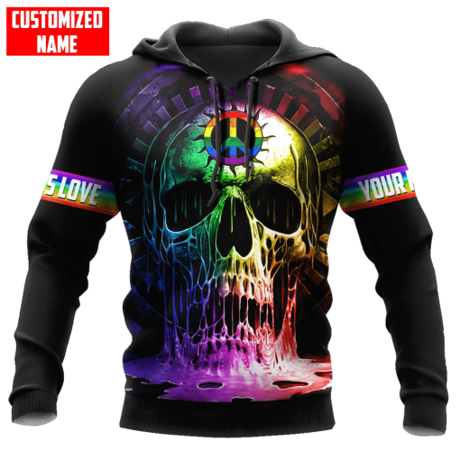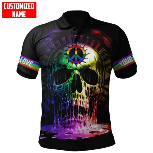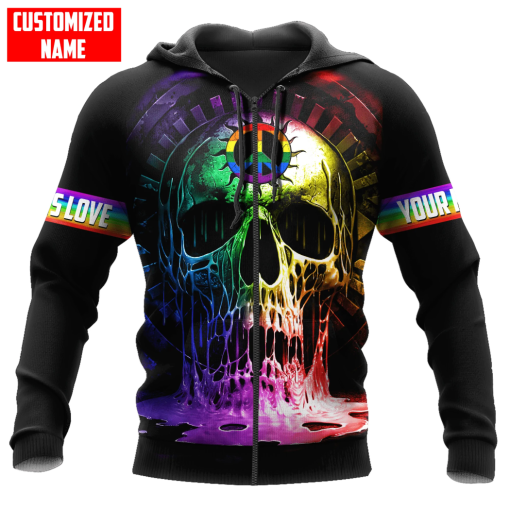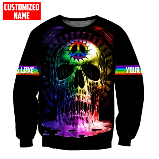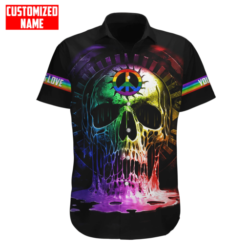 So whether you're looking to show off your own name or create a personalized gift for someone special, LateAndLow Store has got you covered. Start designing your own custom Personalized Lgbt Skull Peace Sign Love Is Love All Over Printed Shirts print-on-demand product today, and let us bring your vision to life!