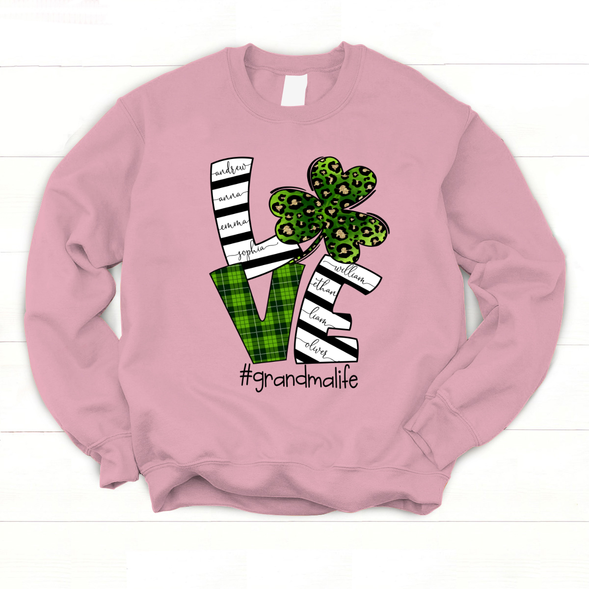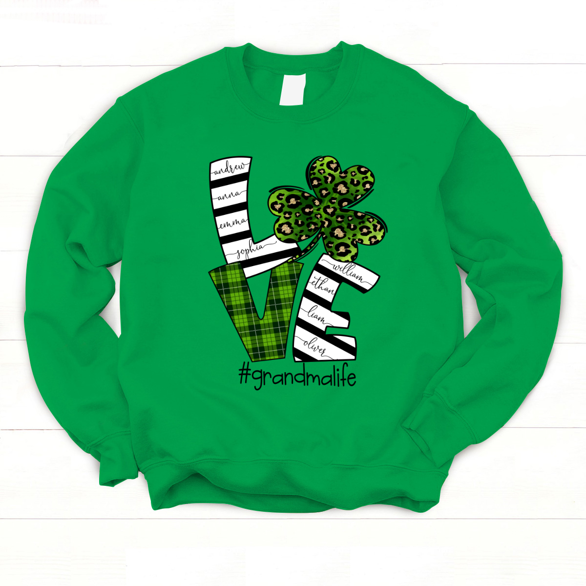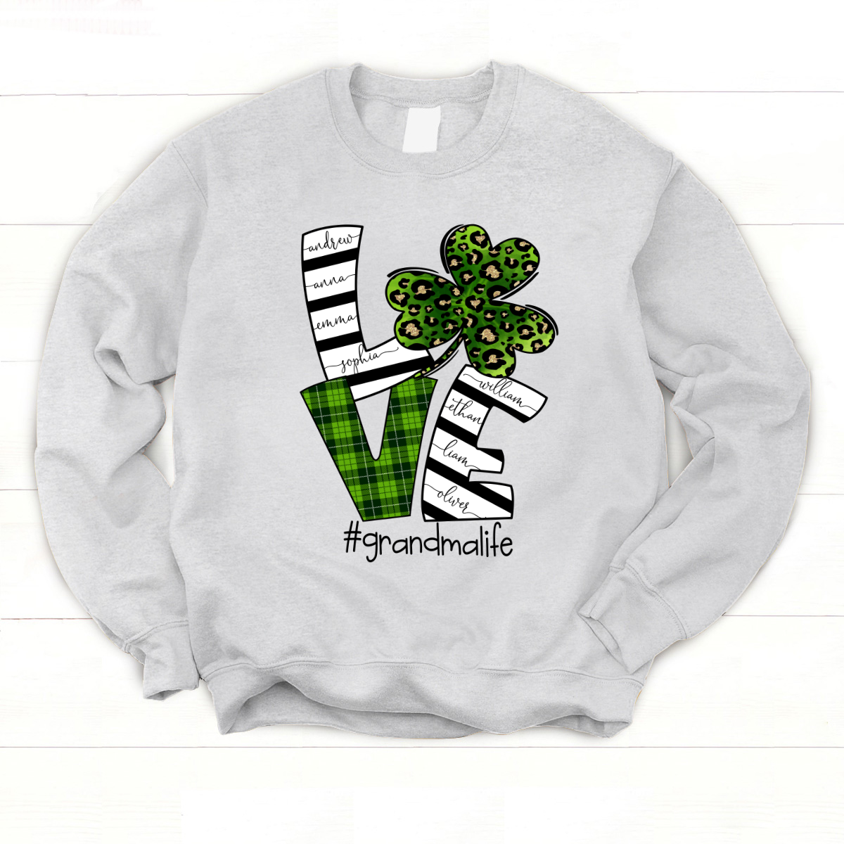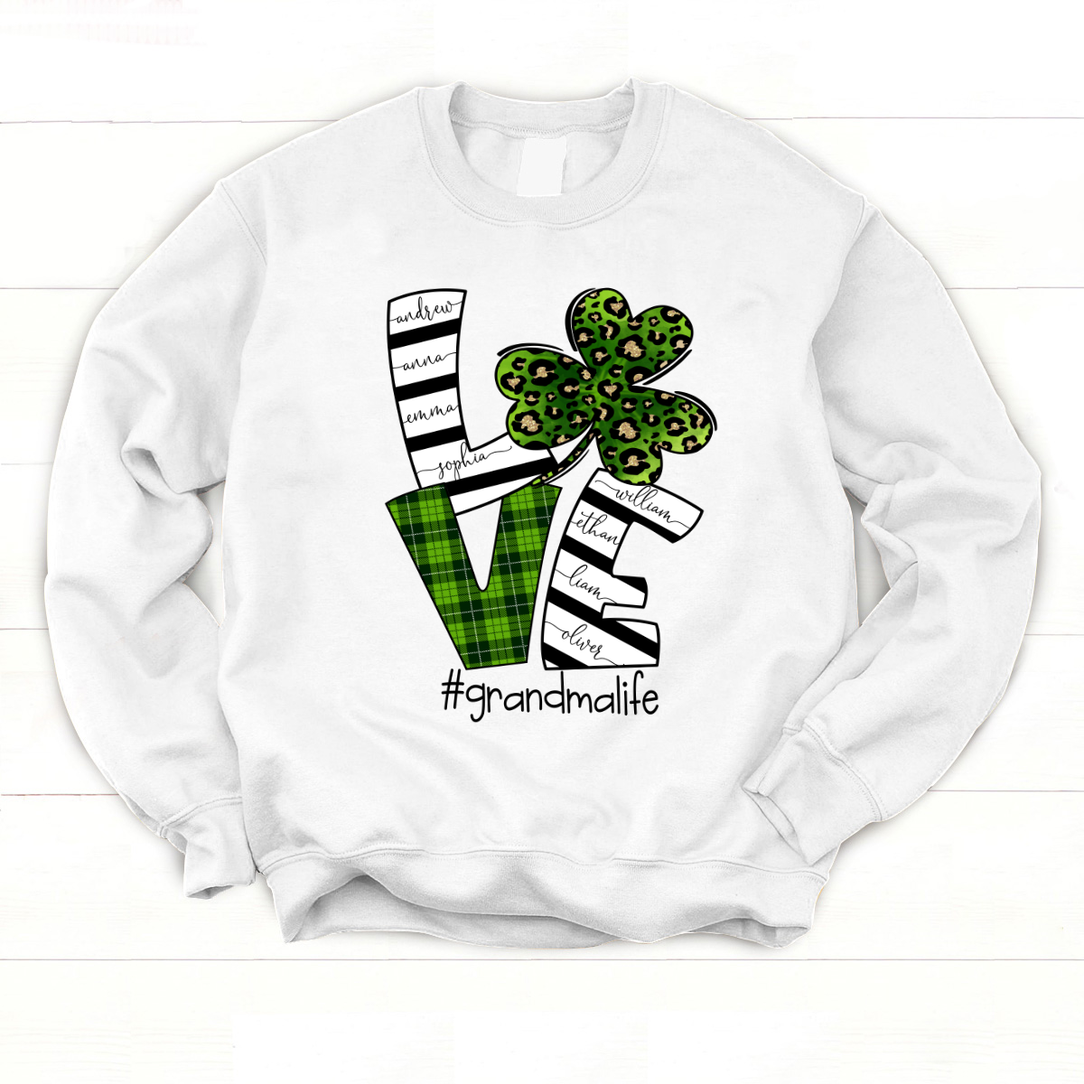 Personalized Love Grandma Life With Grandkids Shamrock St Patricks Day Sweatshirt