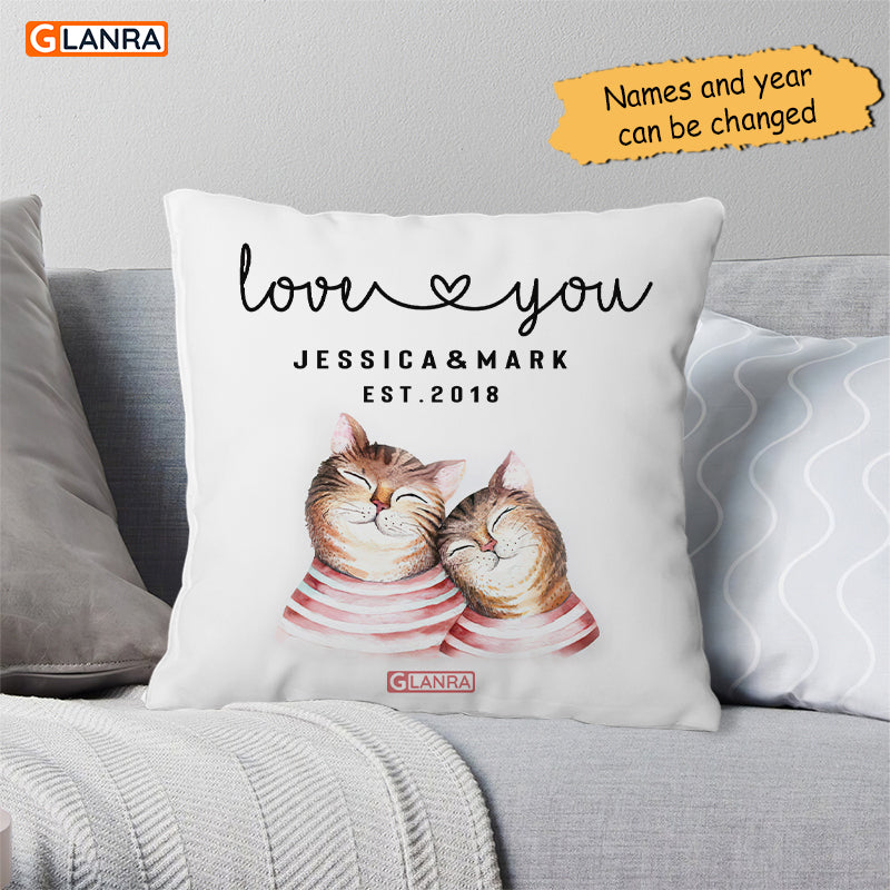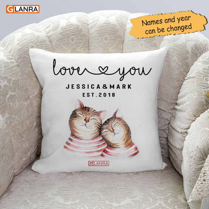 Personalized Love You Pillow, Custom Cat Couple Pillow, Husband Pillow, Wife Pillow, Anniversary Pillow, Valentine Pillow (Insert Included)