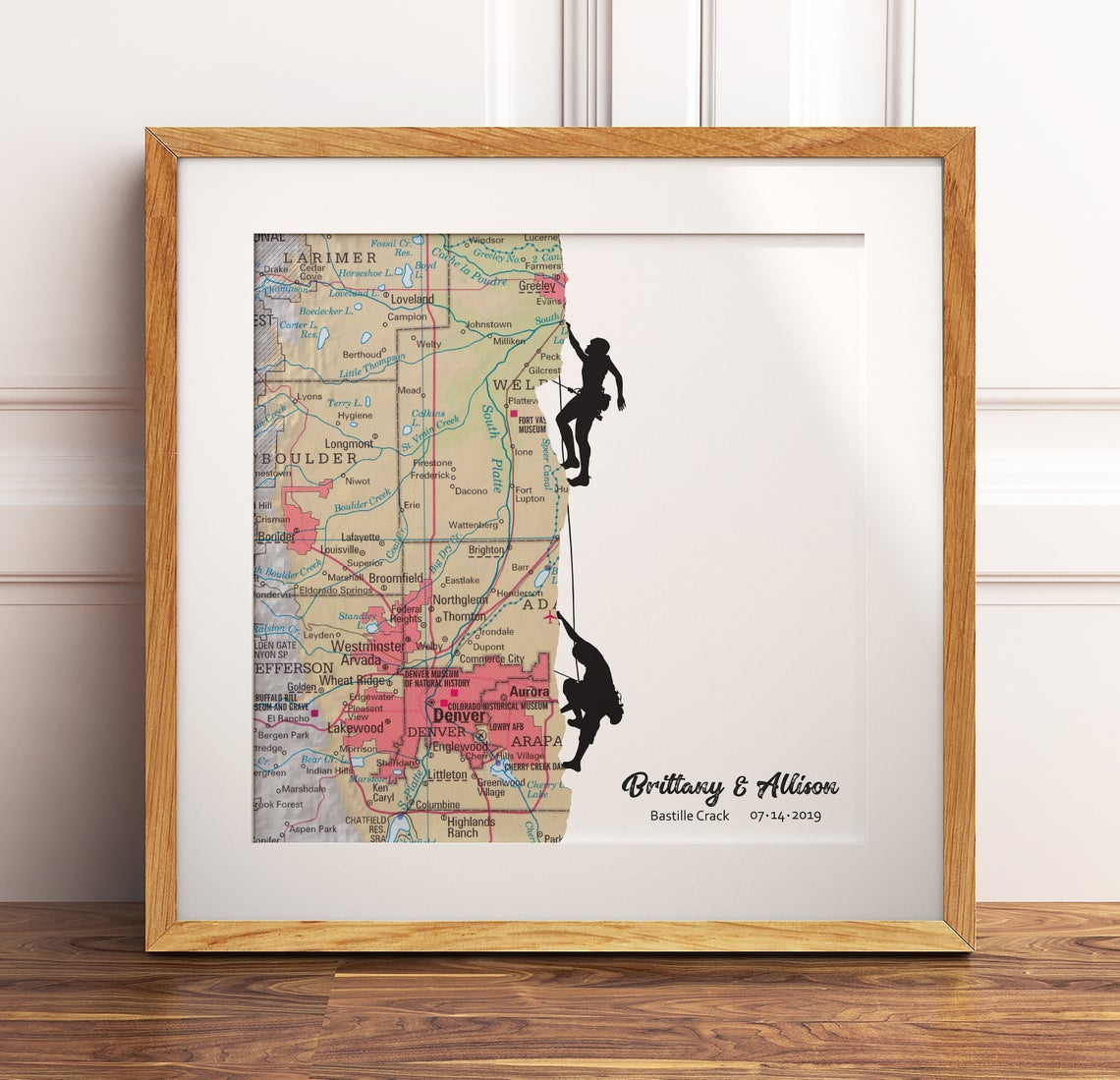 So whether you're looking to show off your own name or create a personalized gift for someone special, LateAndLow Store has got you covered. Start designing your own custom Personalized Map Mountain Climbing Couple Square Poster print-on-demand product today, and let us bring your vision to life!