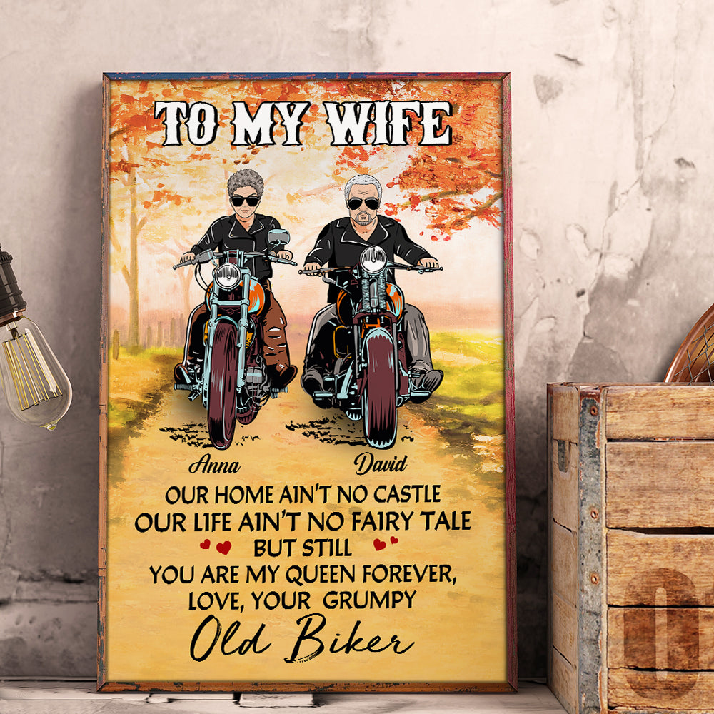 Personalized Marriage Chapter Poster – Biker Couple – To My Wife, Love, Your Grumpy Old Biker