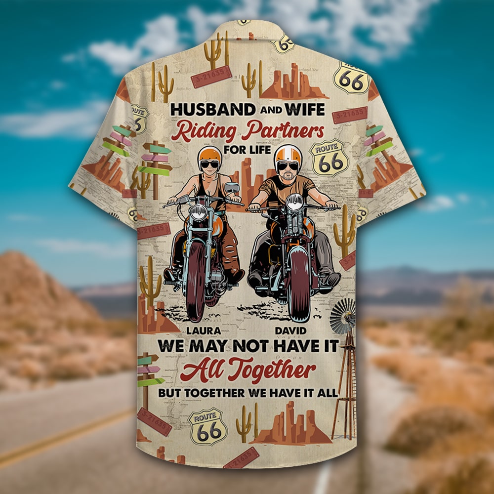 Personalized Motorcycle Couple Hawaiian Shirt – Husband & Wife, Riding Partners For Life