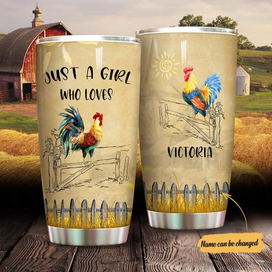 [Personalized name] Just a girl who loves chicken Print Stainless Steel Tumbler 20 Oz Custom