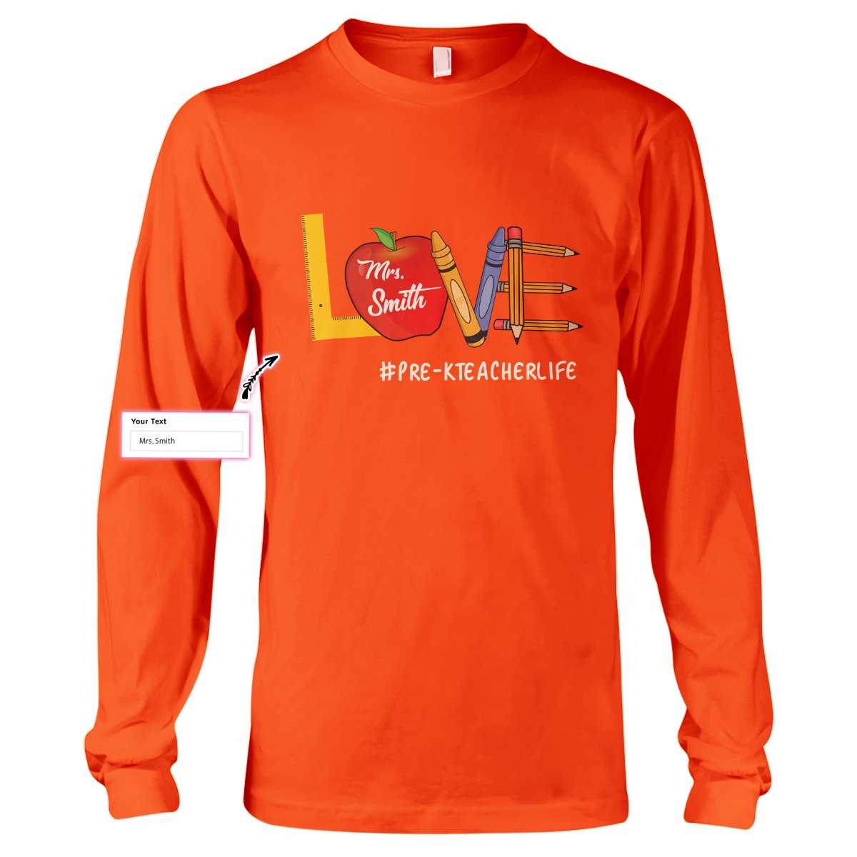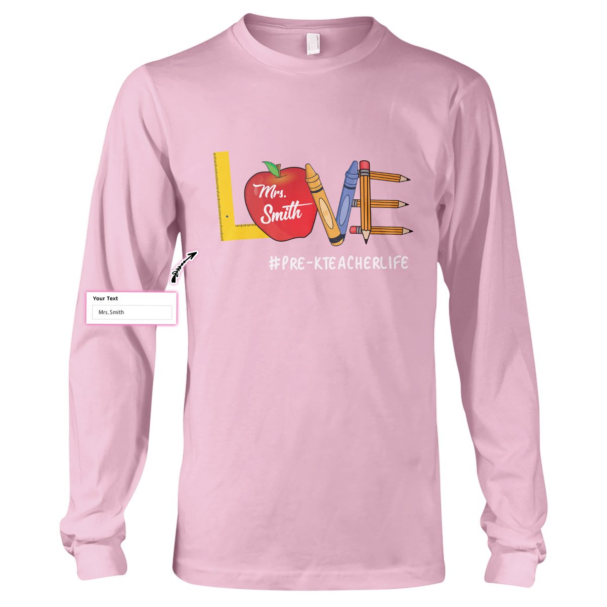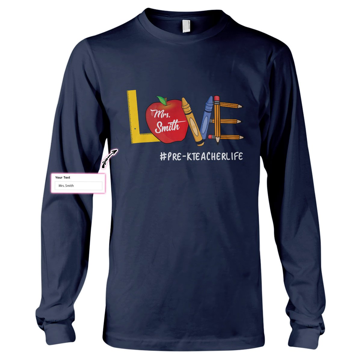 Personalized Name Love Teacher Life Custom Teacher Shirt, Pre-K Teacher Gift Long Sleeve T-Shirt