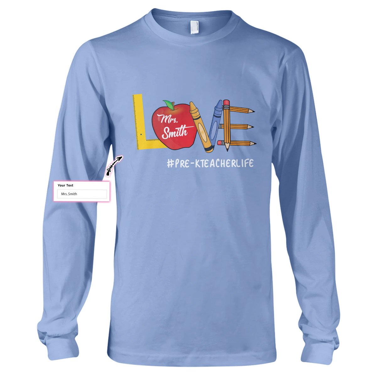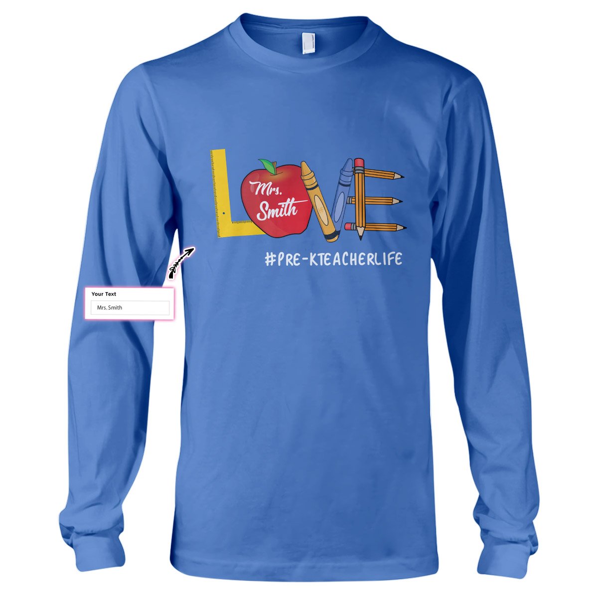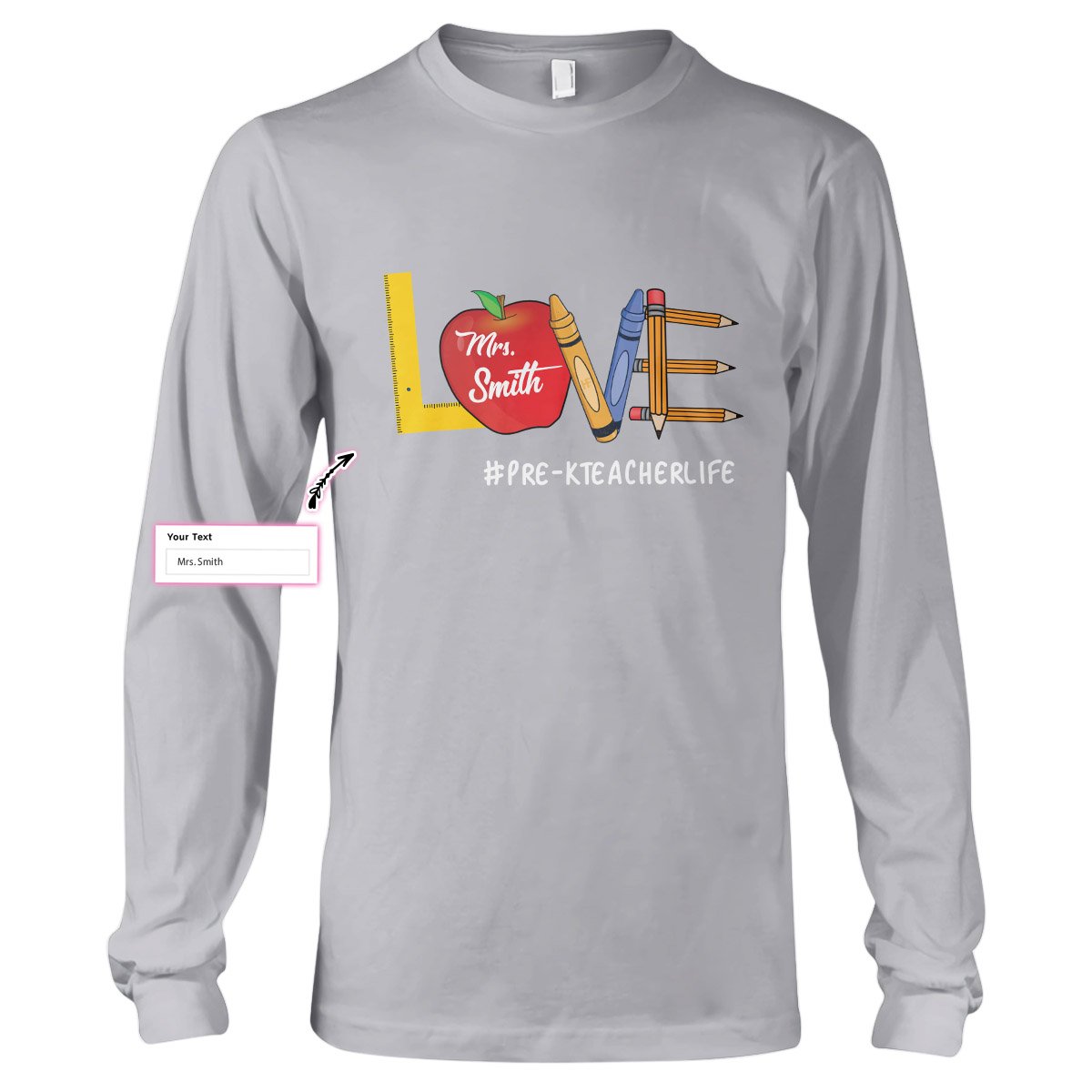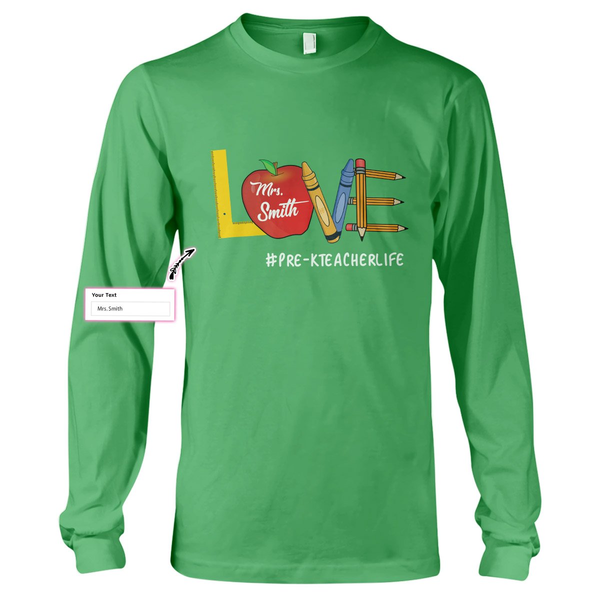 Personalized Name Love Teacher Life Custom Teacher Shirt, Pre-K Teacher Gift Long Sleeve T-Shirt