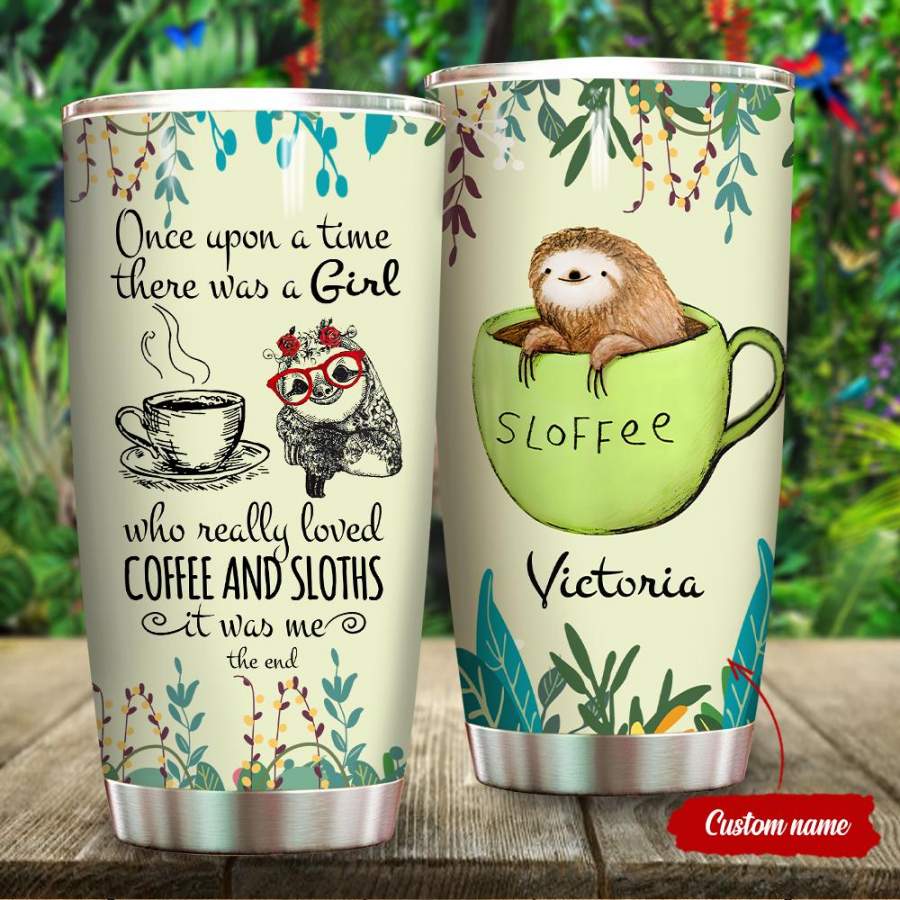 Personalized Name Once Upon A Time There Was A Girl Who Love Coffee And Sloths 20 oz 30 oz Printed Stainless Steel Tumbler