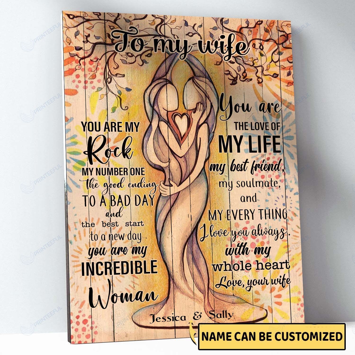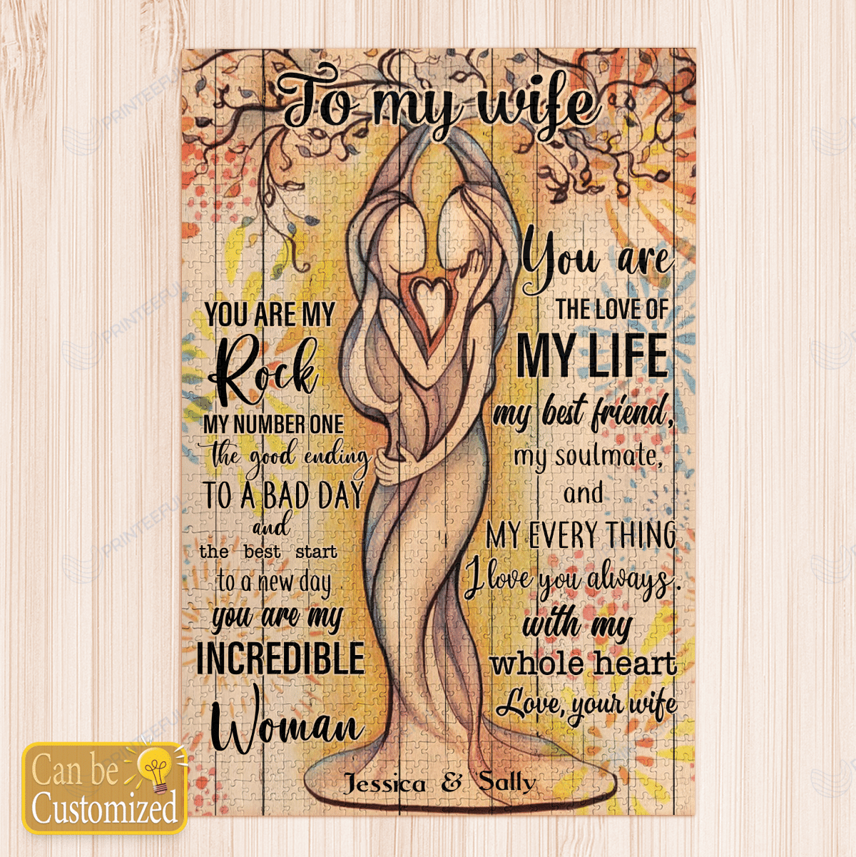 Our print-on-demand products are made with the highest quality materials, ensuring that your personalized Personalized Name To My Wife Female Couple Canvas / Posters / Puzzles design looks great and feels comfortable. You can wear your new custom product with pride or give it as a unique and memorable gift that will be cherished for years to come.