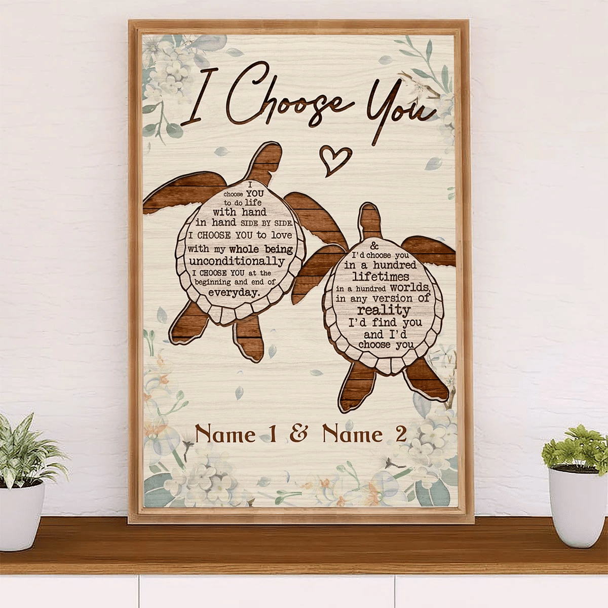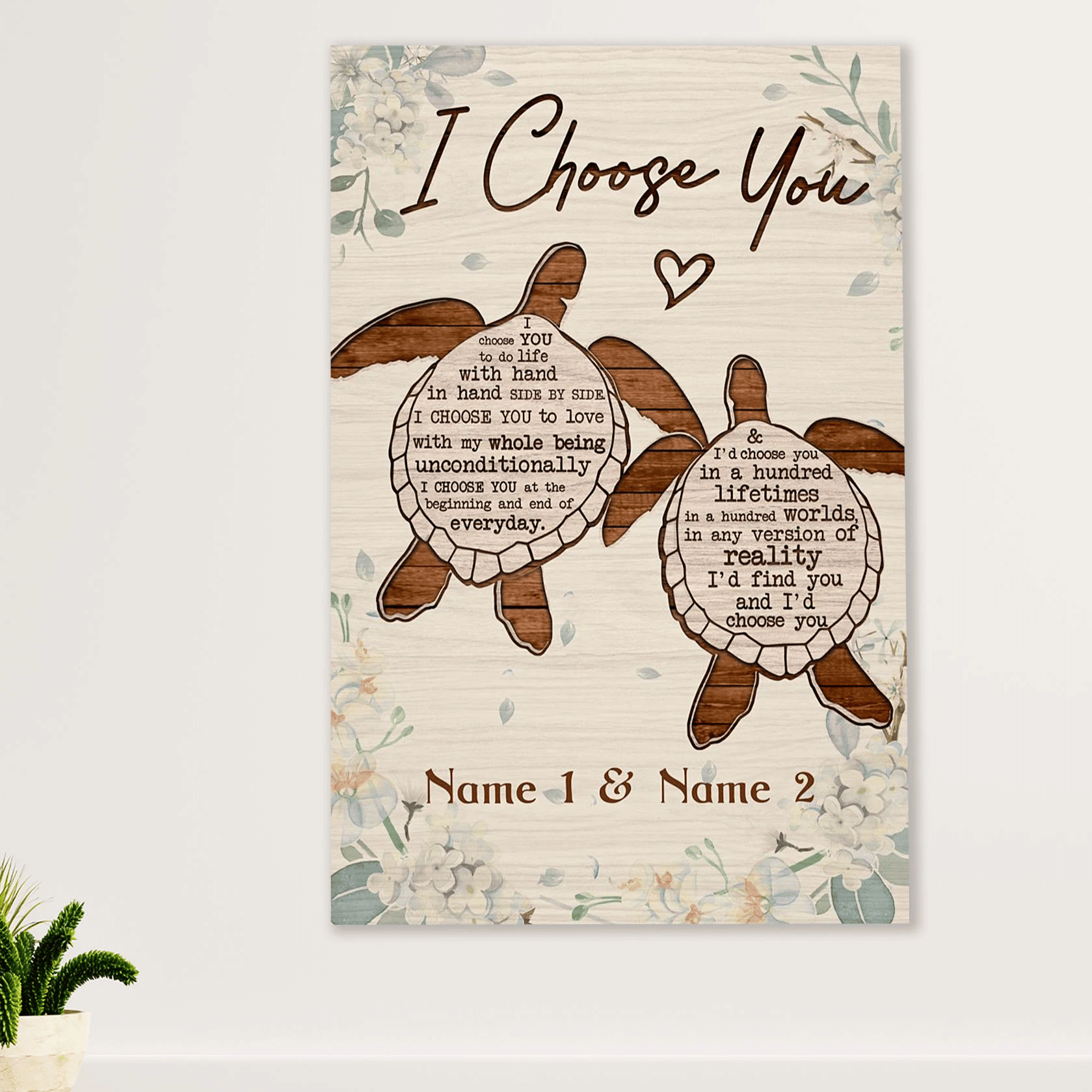 Personalized Name Turtle Couple Poster Canvas – Gift For Sand Sea Ocean Lover Evg84302