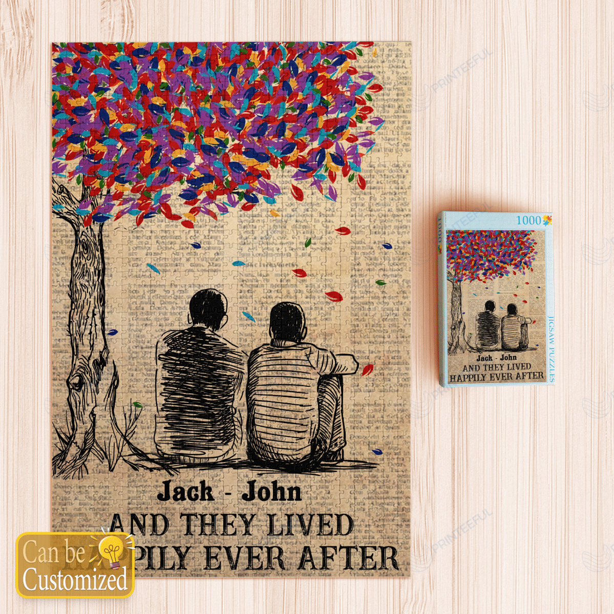 Our print-on-demand products are made with the highest quality materials, ensuring that your personalized Personalized Names They Lives Happily Ever After Male Couple Canvas / Posters / Puzzles design looks great and feels comfortable. You can wear your new custom product with pride or give it as a unique and memorable gift that will be cherished for years to come.