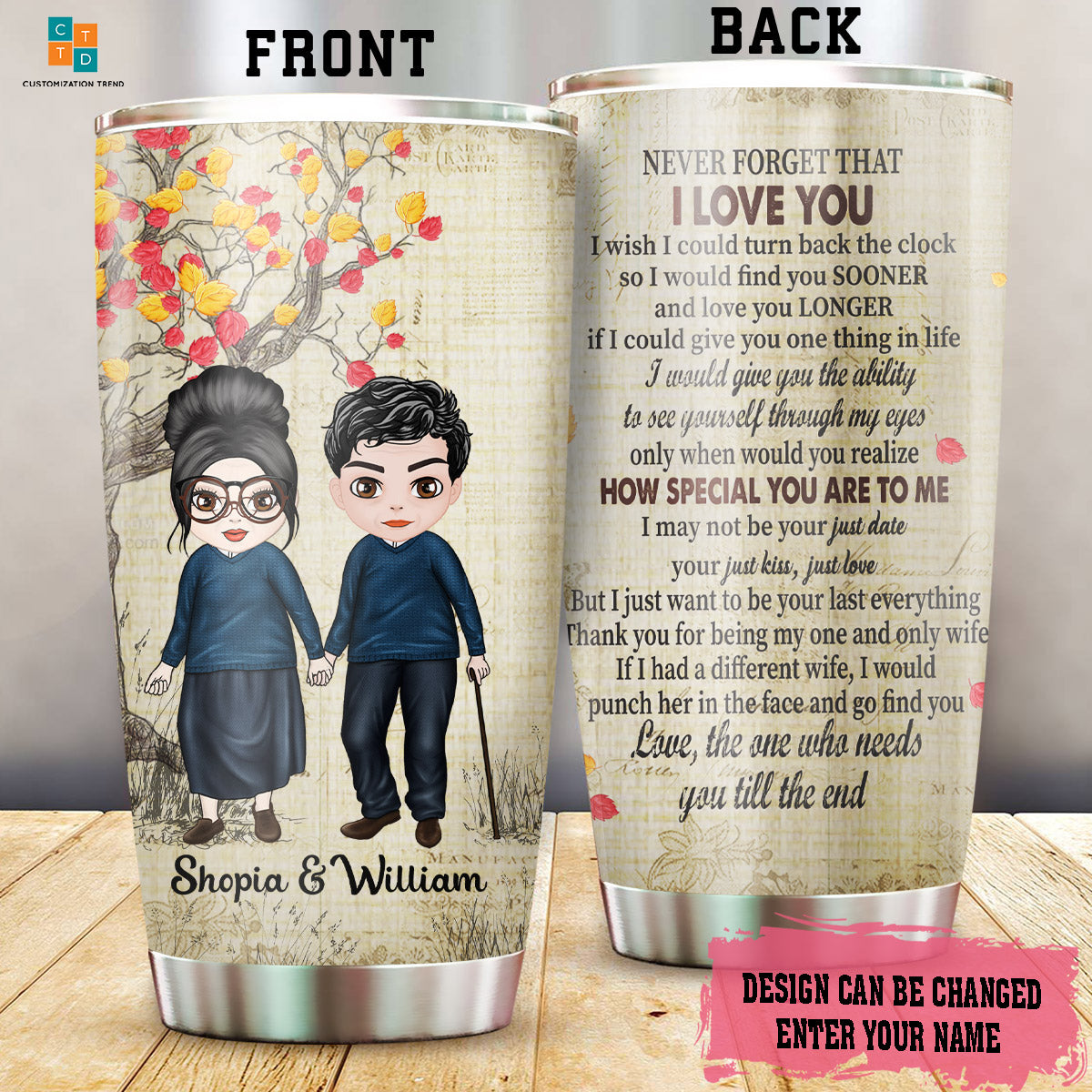 Personalized Never Forget That I Love You Old Couple Steel Tumbler, Custom Husband And Wife Stainless Steel Tumbler