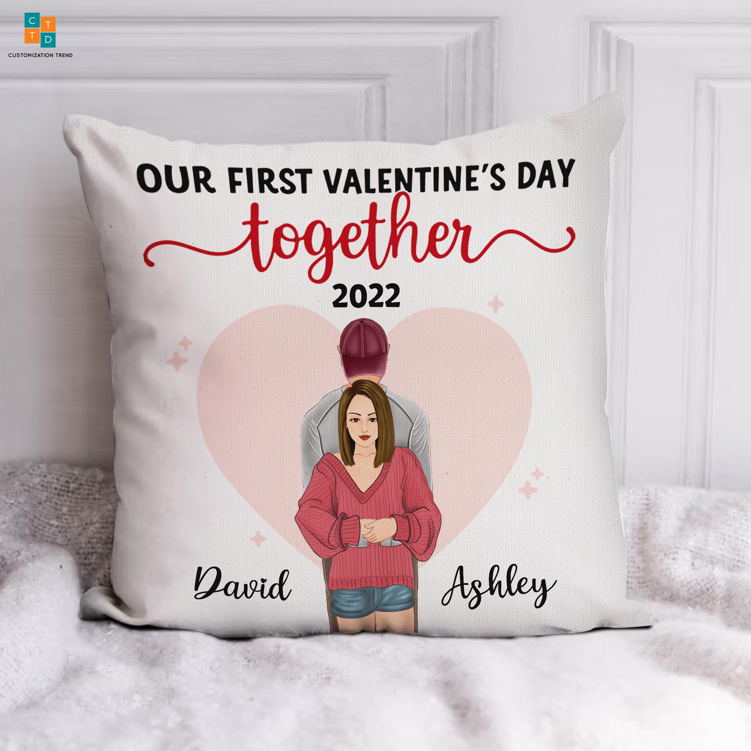 Personalized Our First Valentine’S Day Together Pillow, Custom Couple Pillow