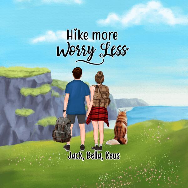 Personalized Pillow, Hiking Couple With Dogs, Gift For Hikers And Dog Lovers