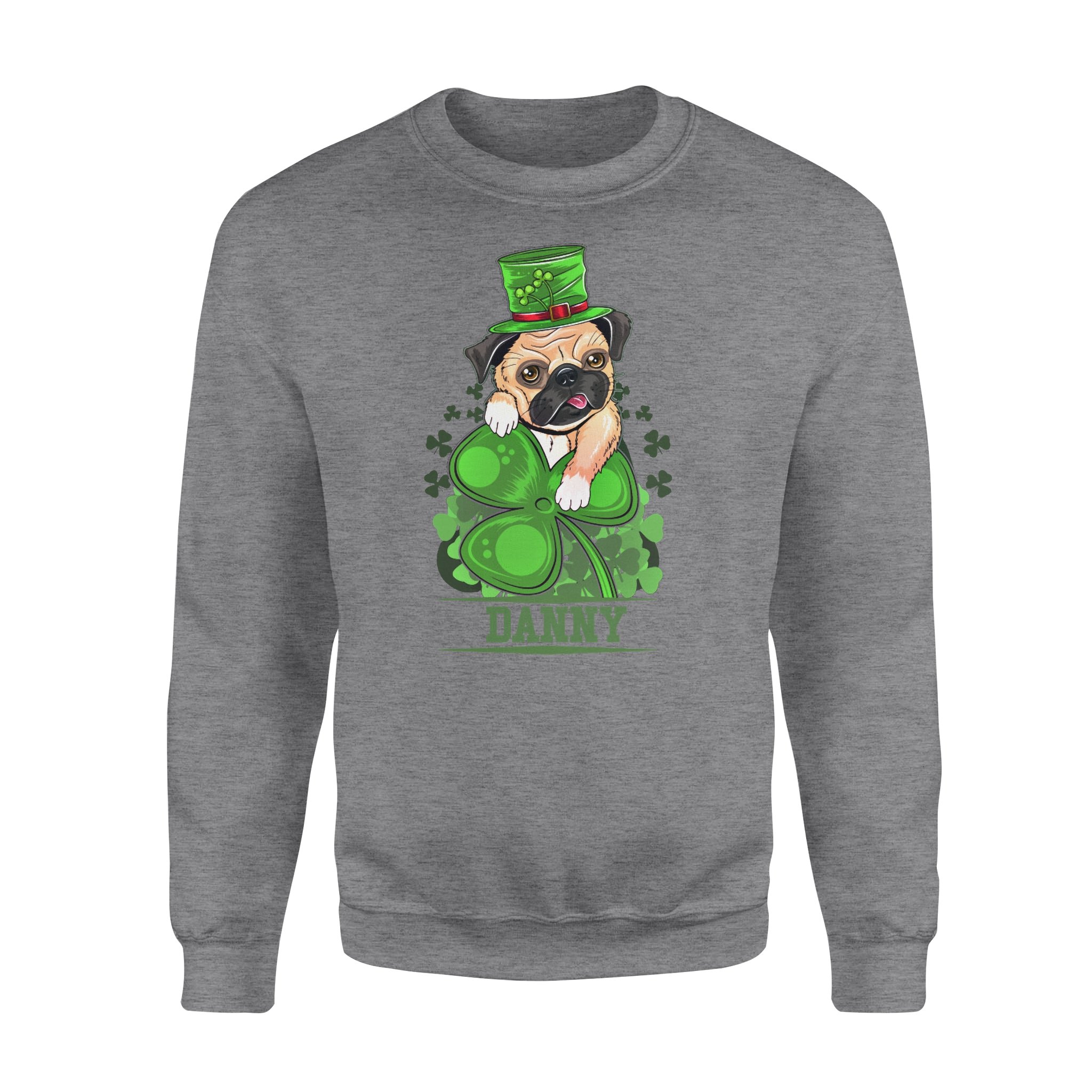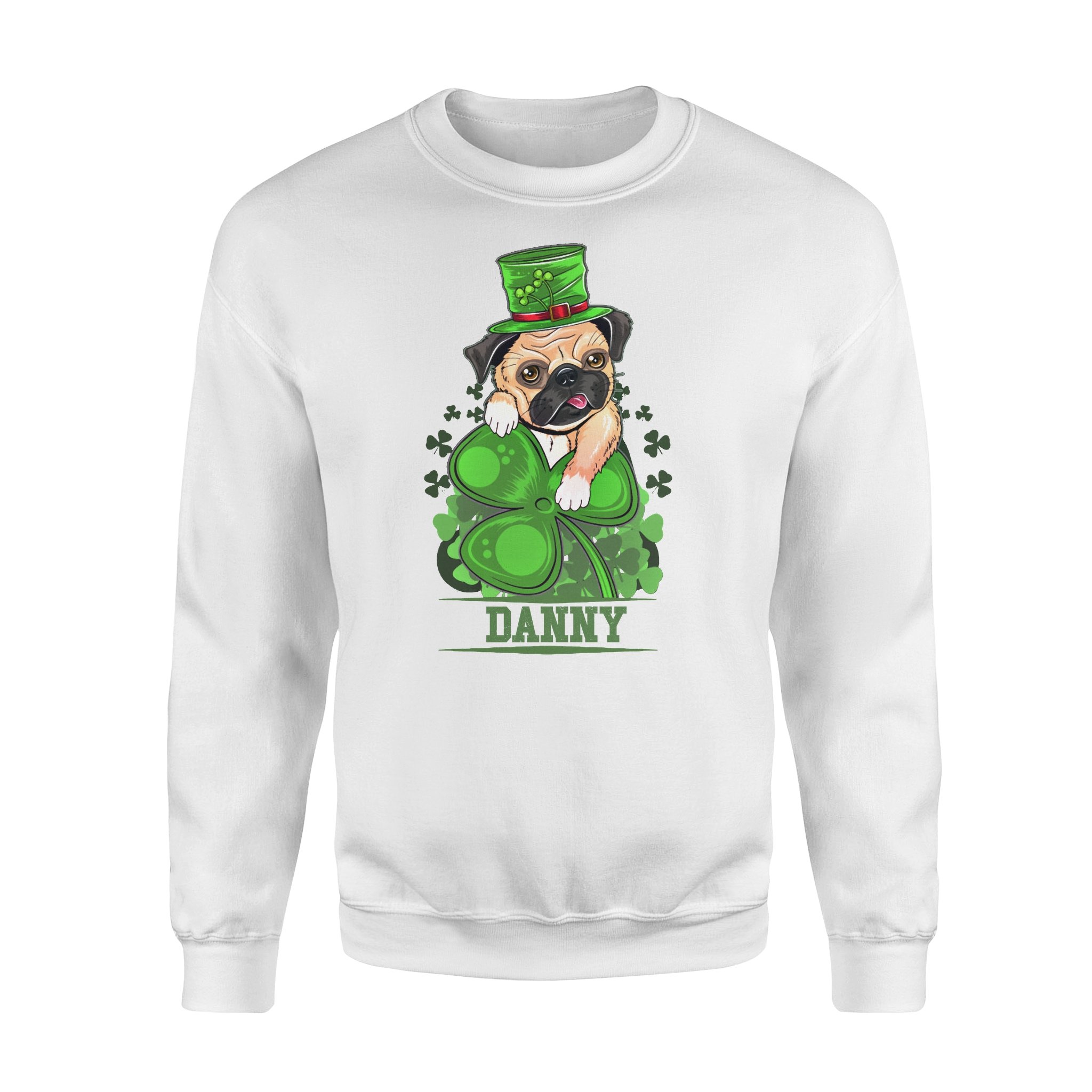 Personalized St. Patrick Gift Idea – Lovely Bulldog With Clover – Standard Crew Neck Sweatshirt