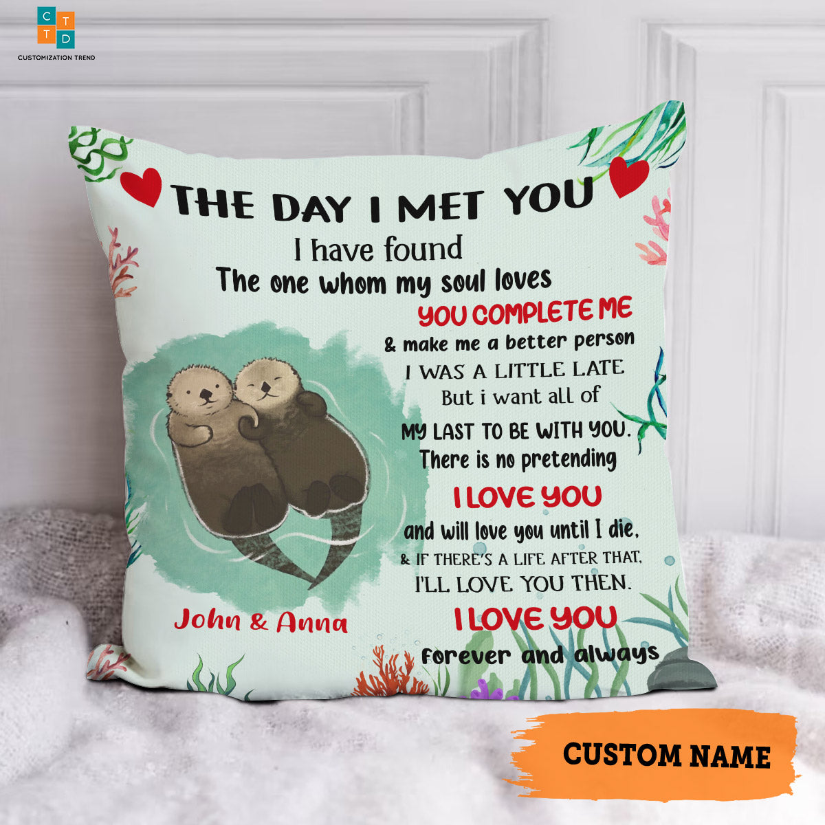 Personalized The Day I Met You Couple Otter Pillow , Custom Couple Pillow