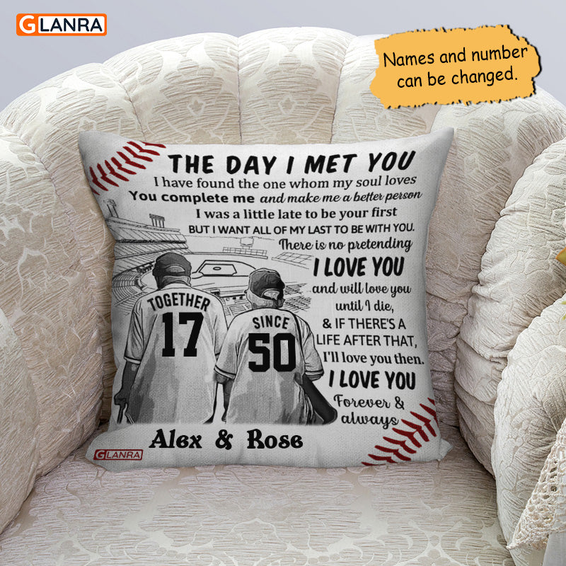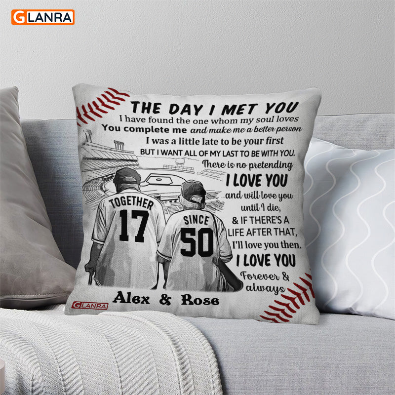 Personalized The Day I Met You I Have Found The One Whom My Soul Loves Pillow, Custom Baseball Couple Pillow, Couple Pillow (Insert Included)