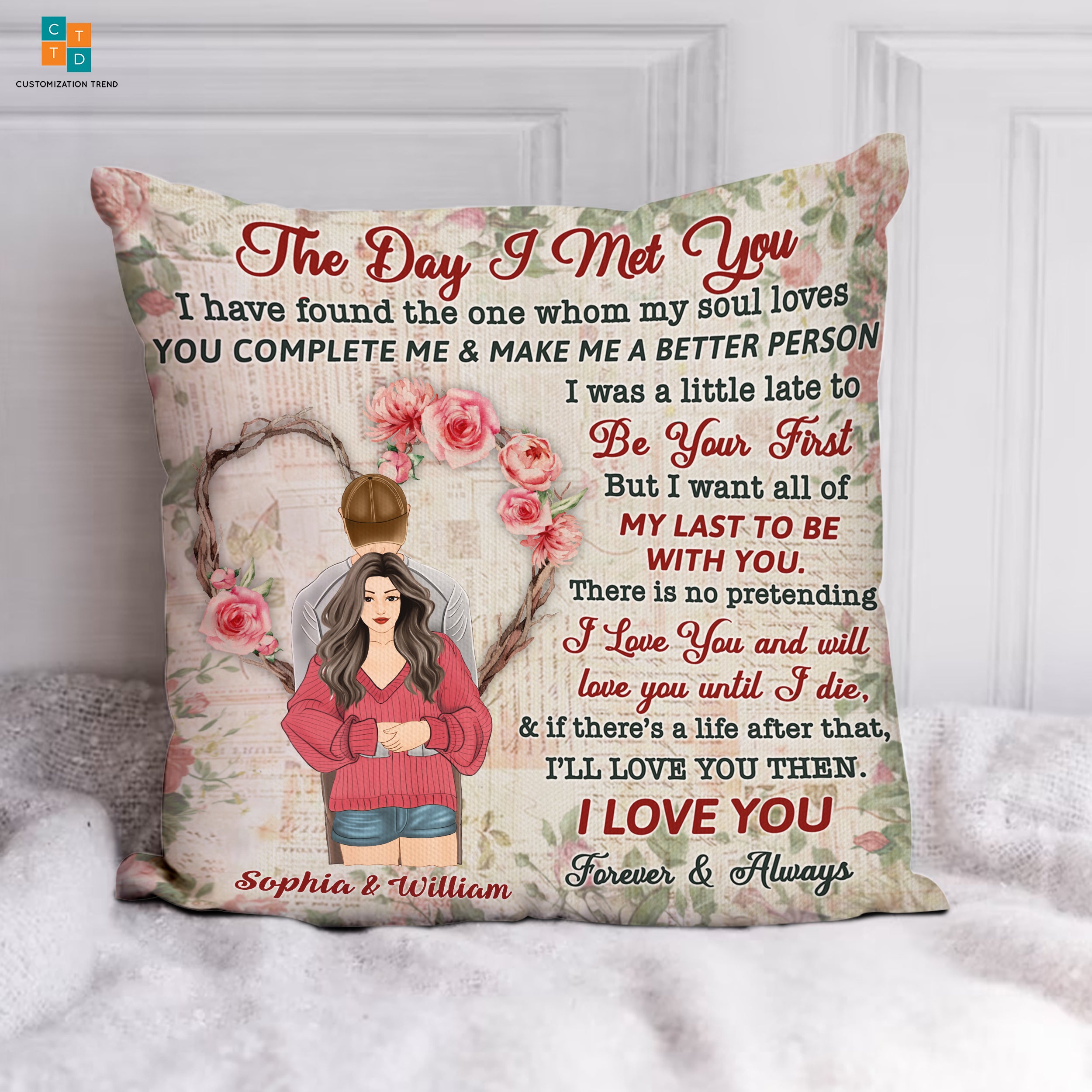 Personalized The Day I Met You I Love You Forever & Always Pillow, Custom Couple, Husband And Wife Pillow