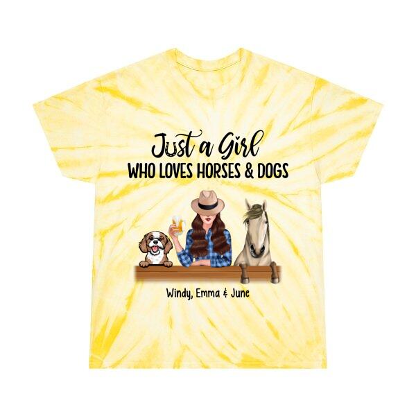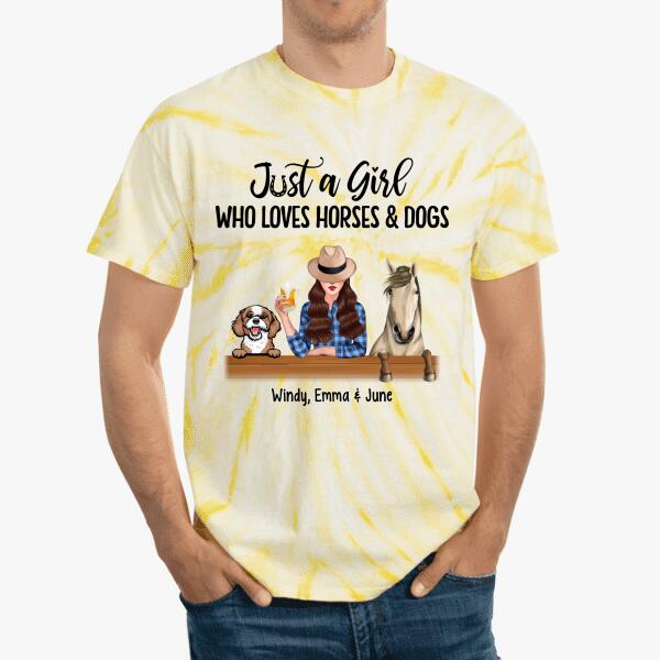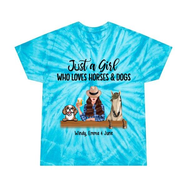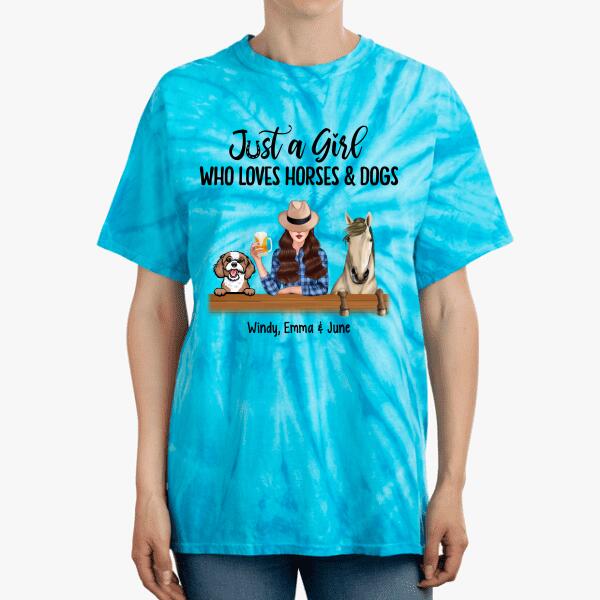 Personalized Tie-Dye Shirt, A Girl Who Loves Horses And Dogs, Gift For Dog Lovers, Horse Lovers
