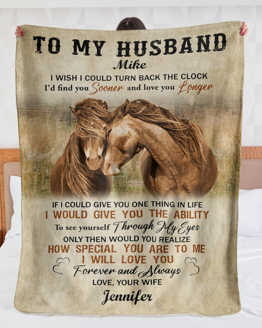 Personalized To My Husband Horse Farm Blanket From Wife, To My Husband I Wish I Could Turn Back The Clock Horse Couple Love Blanket Gifts For Husband