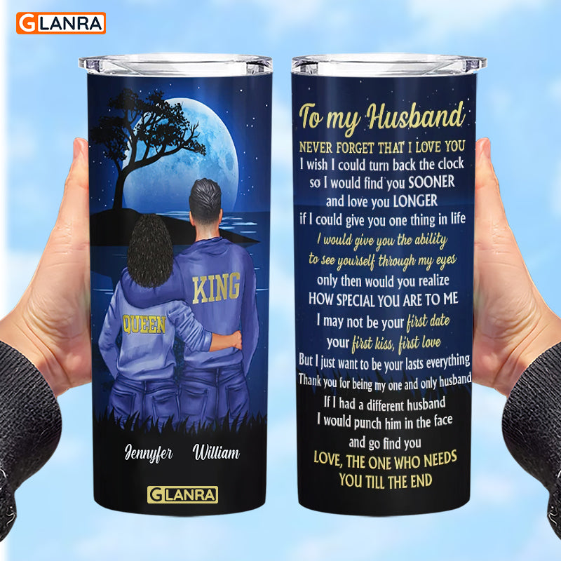 Personalized To My Husband Never Forget That I Love You Skinny Tumbler, Custom Couple Stainless Steel Tumbler, Water Bottle, Glitter, Metal, Insulated
