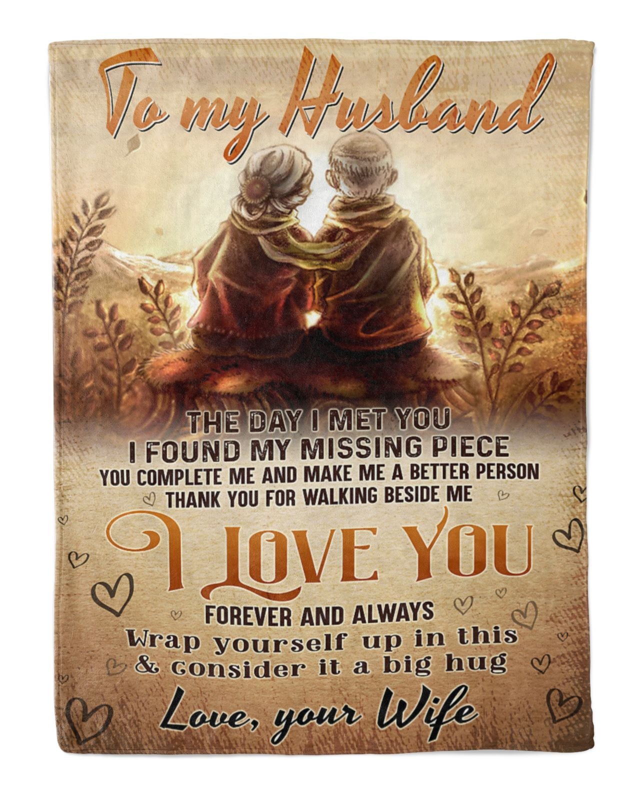 Personalized To My Husband Old Couple Blanket From Wife, To My Husband The Day I Met You I Found My Mising Piece Old Couple Blanket Gifts For Husband
