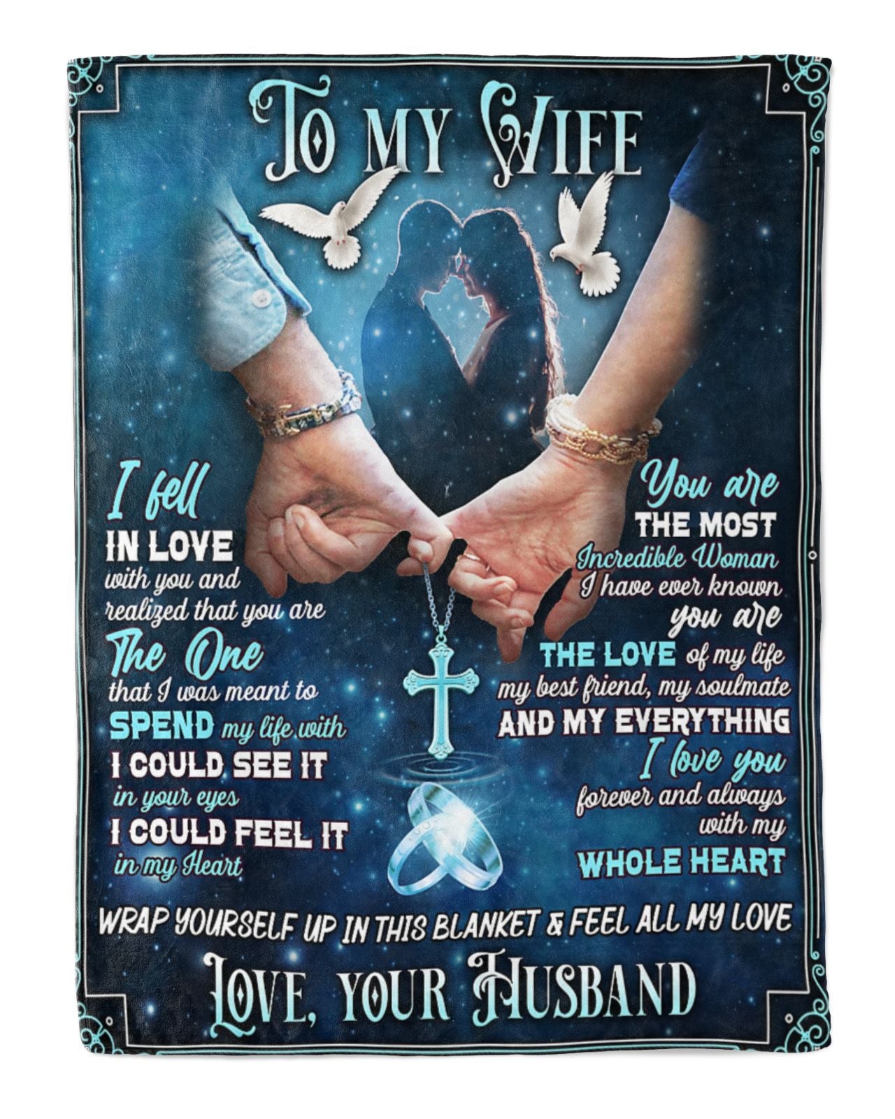Personalized To My Wife Couple Holding Hands Cross Blanket From Husband, To My Wife I Fell In Love With You And Realized Cross Blanket Gifts For Wife