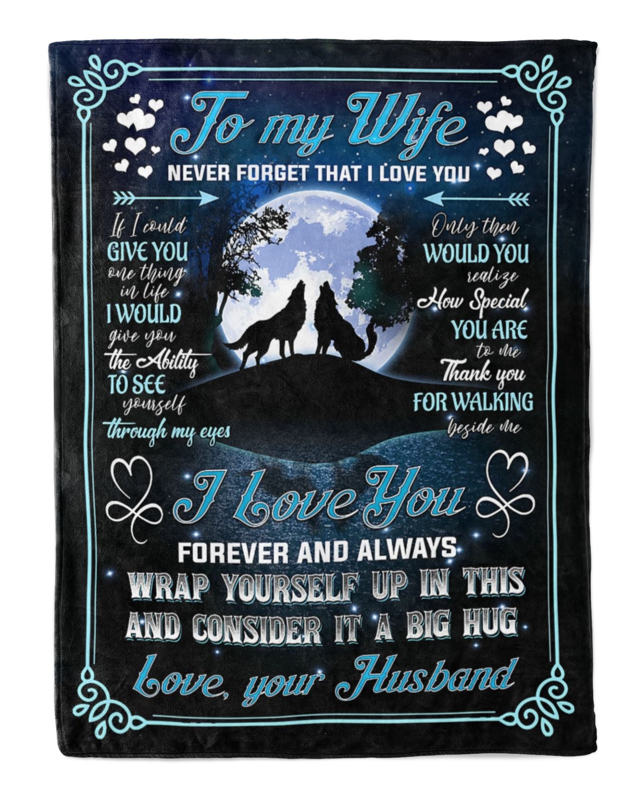 So whether you're looking to show off your own name or create a personalized gift for someone special, LateAndLow Store has got you covered. Start designing your own custom Personalized To My Wife Couple Wolf Howling Moon Blanket From Husband, To My Wife Never Forget That I Love You Wolf Howling Moon Blanket Gifts print-on-demand product today, and let us bring your vision to life!