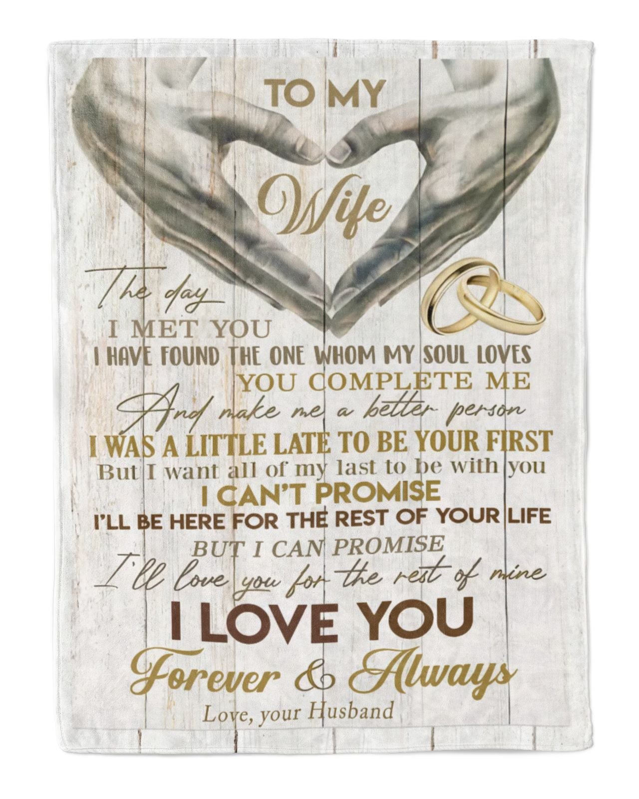 Personalized To My Wife Hand Heart Fleece Blanket, To My Wife The Day I Met You Ring Couple Blanket Gifts For Wife