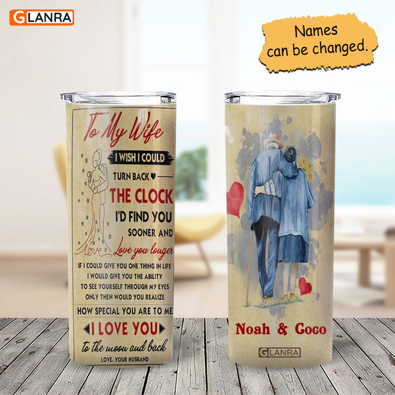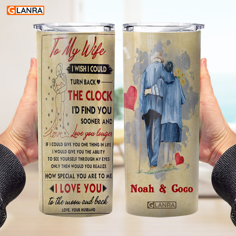 Personalized To My Wife I Love You To The Moon And Back Skinny Tumbler, Custom Couple Glitter Water Bottle, Stainless Steel Tumbler, Metal, Insulated