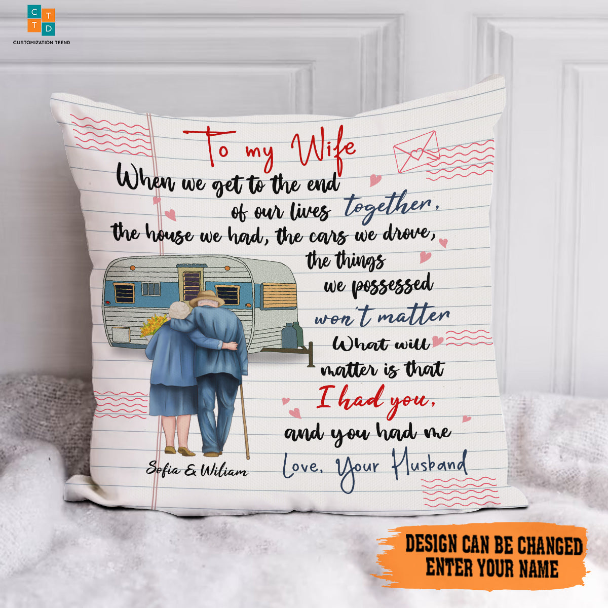 Personalized To My Wife When We Get To The End Old Couple Pillow , Custom Couple Pillow