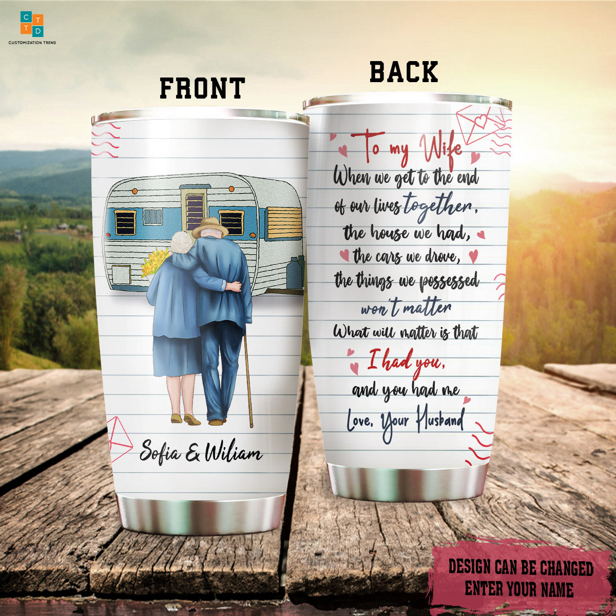 So whether you're looking to show off your own name or create a personalized gift for someone special, LateAndLow Store has got you covered. Start designing your own custom Personalized To My Wife When We Get To The End Old Couple Stainless Steel Tumbler, Custom Couple Stainless Steel Tumbler print-on-demand product today, and let us bring your vision to life!