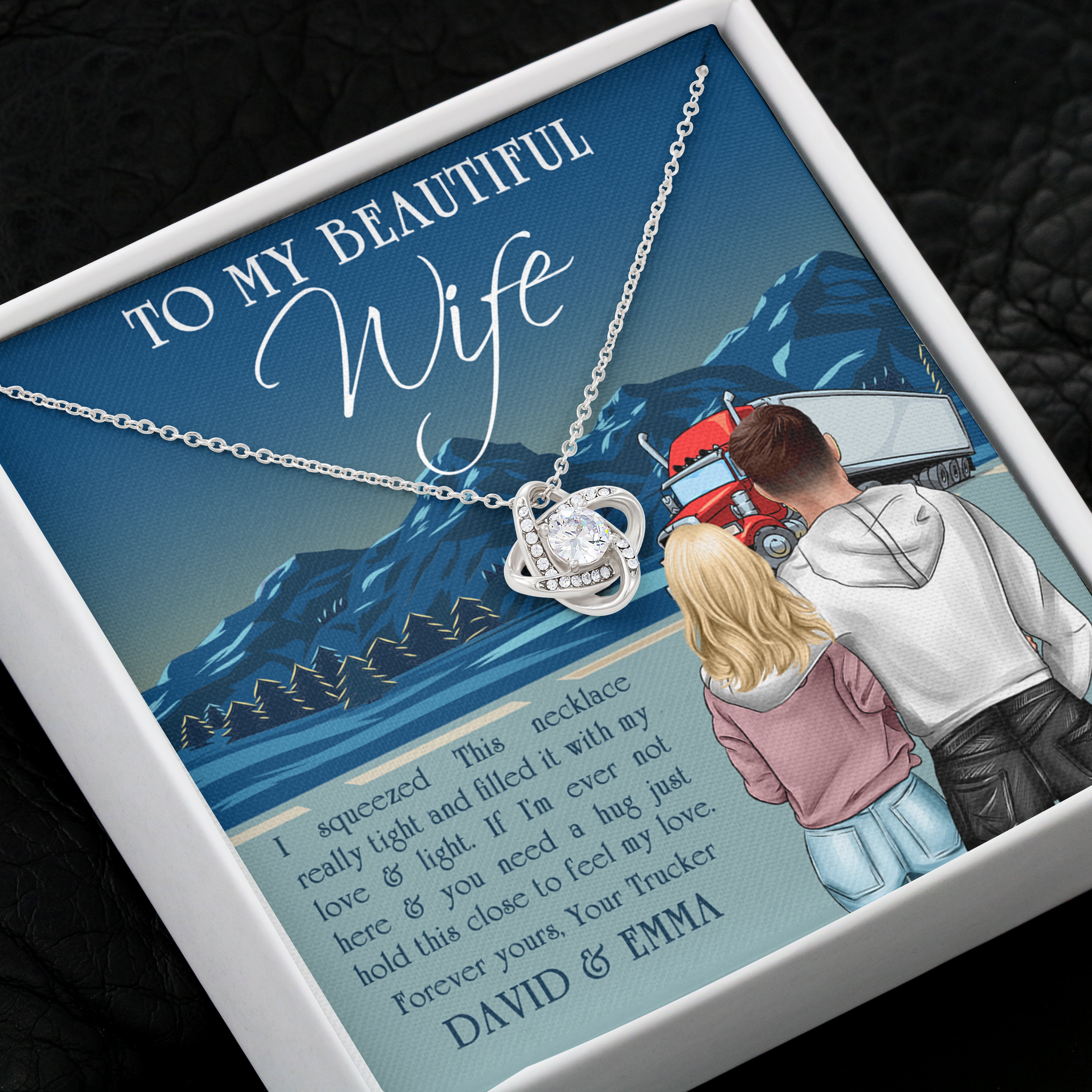 Personalized Trucker Couple – Love Knot Necklace – To My Beautiful Wife Message Card