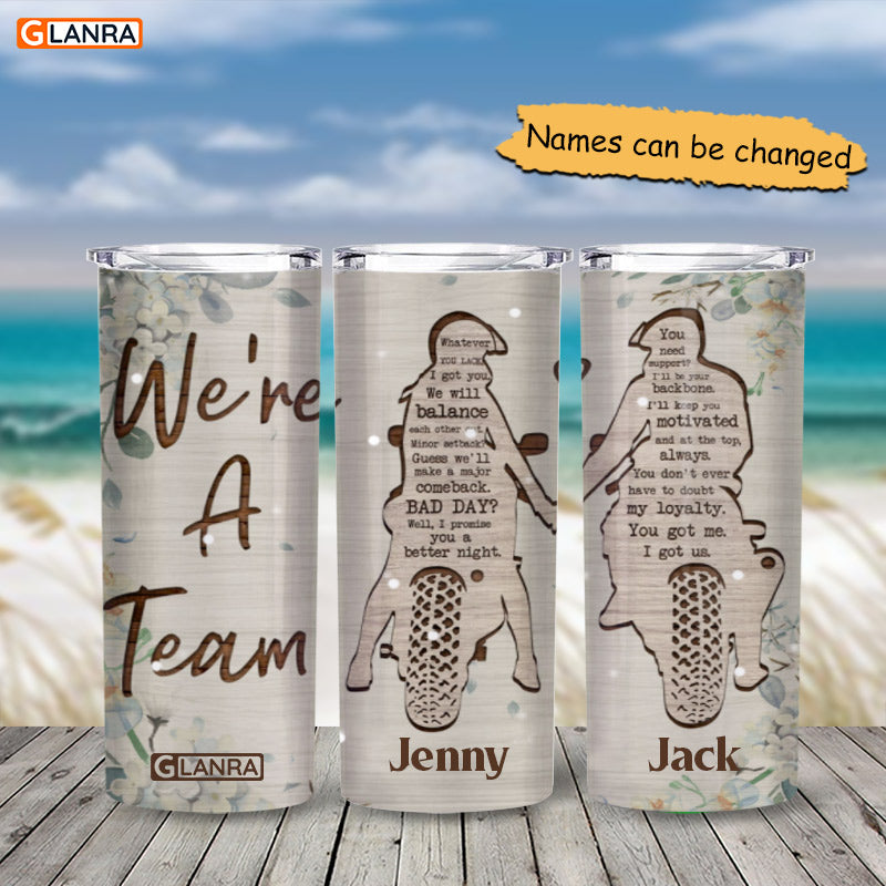 Personalized We’Re A Team Skinny Tumbler, Custom Biker Couple Skinny Tumbler, Couple Stainless Steel, Water Bottle, Glitter, Metal, Insulated, Tumbler