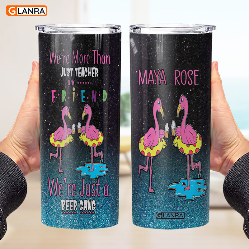 Personalized We’Re More Than Just Teacher Skinny Tumbler, Custom Flamingo Couple Glitter Water Bottle, Stainless Steel Tumbler, Metal, Insulated
