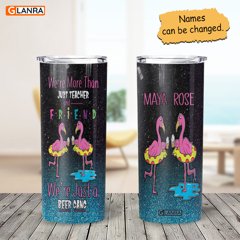 So whether you're looking to show off your own name or create a personalized gift for someone special, LateAndLow Store has got you covered. Start designing your own custom Personalized We’Re More Than Just Teacher Skinny Tumbler, Custom Flamingo Couple Glitter Water Bottle, Stainless Steel Tumbler, Metal, Insulated print-on-demand product today, and let us bring your vision to life!