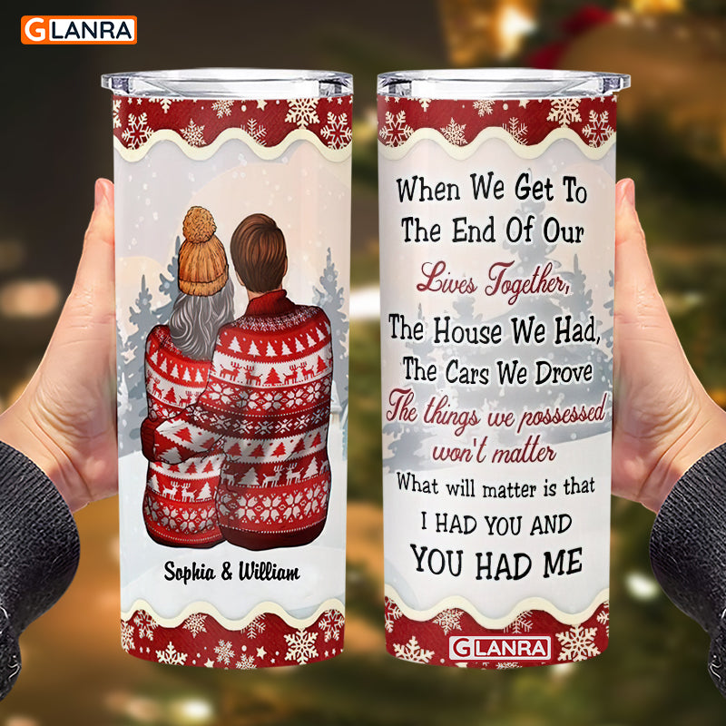 Personalized When We Get To The End Of Our Lives Skinny Tumbler, Custom Couple Stainless Steel, Water Bottle, Glitter, Metal, Insulated, Tumbler