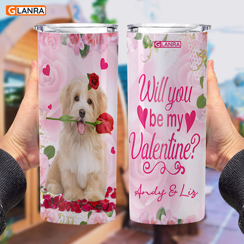 Personalized Will You Be My Valentine Skinny Tumbler, Custom Couple Tumbler, Shih Tzu Glitter Water Bottle, Stainless Steel Tumbler, Metal, Insulated