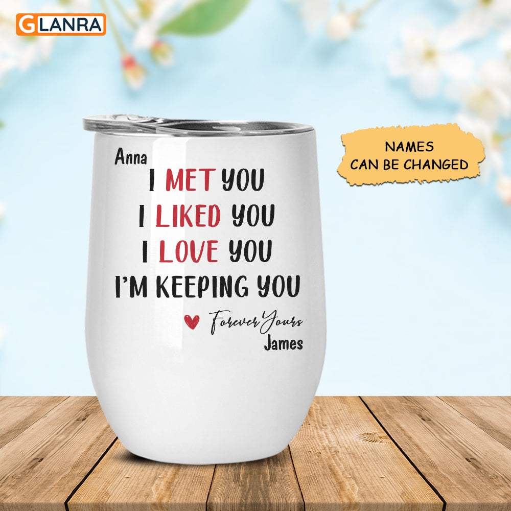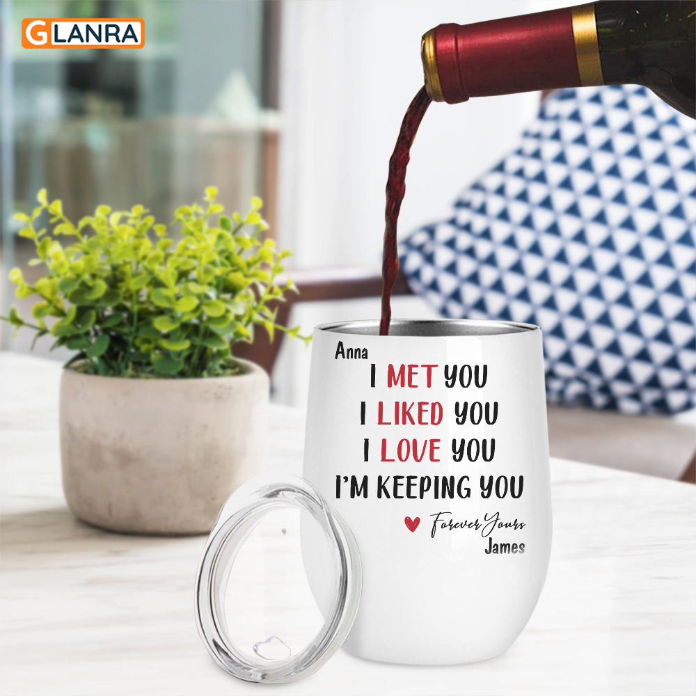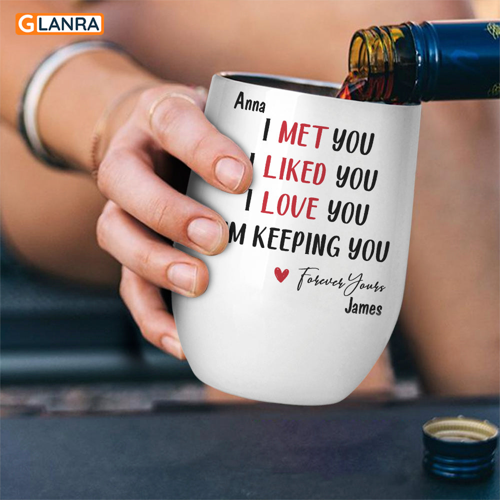 Personalized Wine Tumbler Gift For Boy Girl Friend I Met You I Liked You I Love You I’M Keeping You