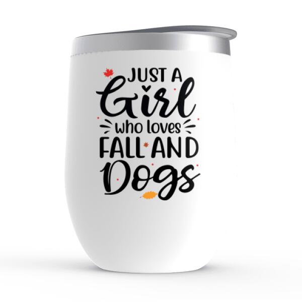 Personalized Wine Tumbler, Just A Girl Who Loves Fall And Dogs, Fall Gift For Dog Lovers
