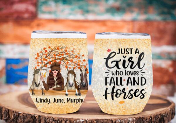 Personalized Wine Tumbler, Just A Girl Who Loves Fall And Horses – Fall Gift, Gift For Horse Lovers