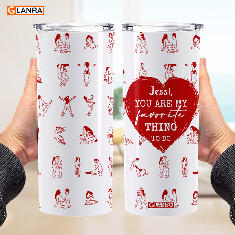 Personalized You Are My Favorite Thing To Do Skinny Tumbler, Custom Couple Valentine Glitter Water Bottle, Stainless Steel Tumbler, Metal, Insulated