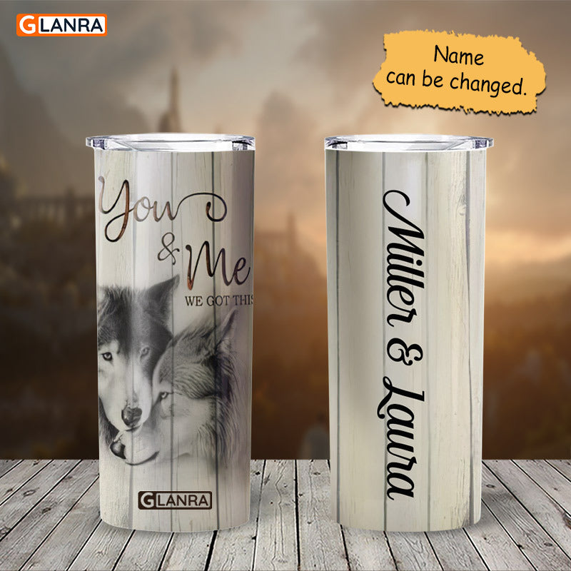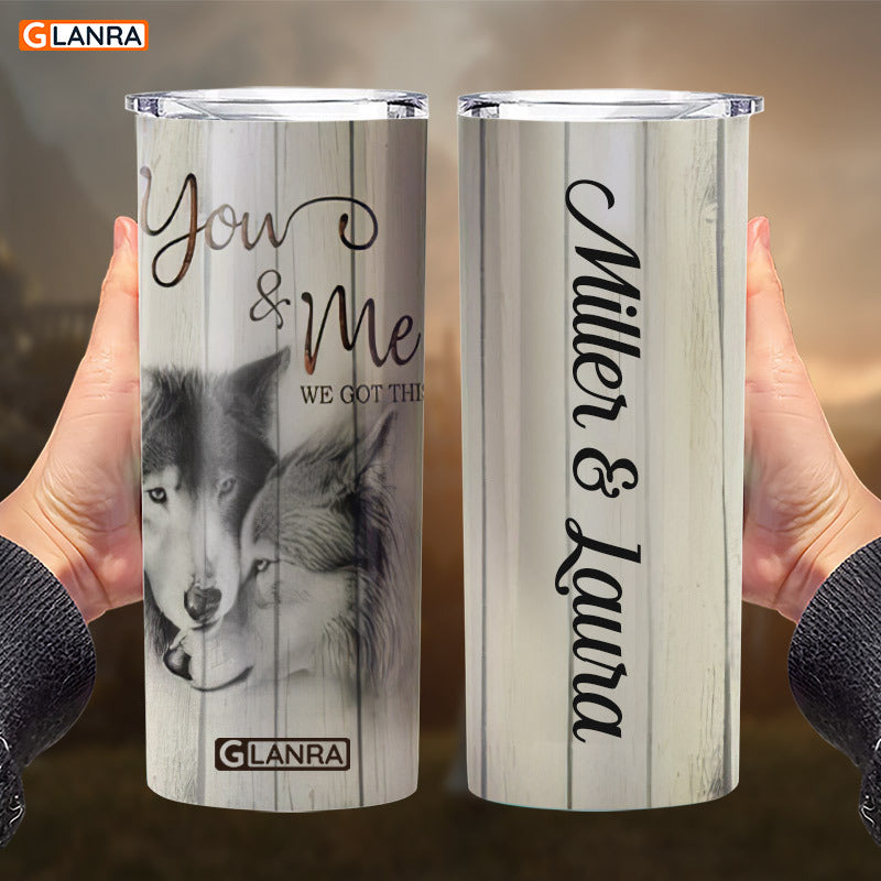 Personalized You & Me We Got This Skinny Tumbler, Custom Wolf Couple Skinny Tumbler, Stainless Steel, Water Bottle, Glitter, Metal, Insulated, Tumbler