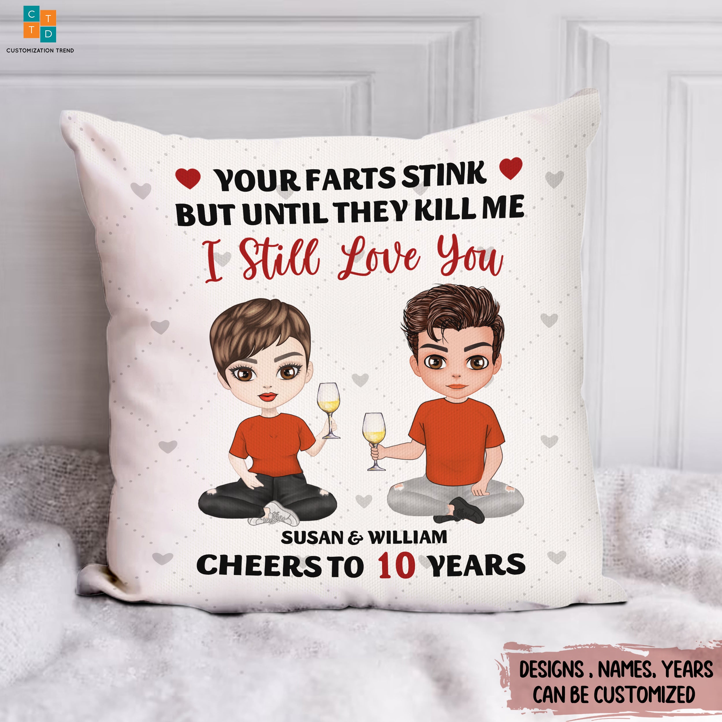 Personalized Your Farts Stink Chibi Couple Pillow, Custom Husband And Wife Pillow