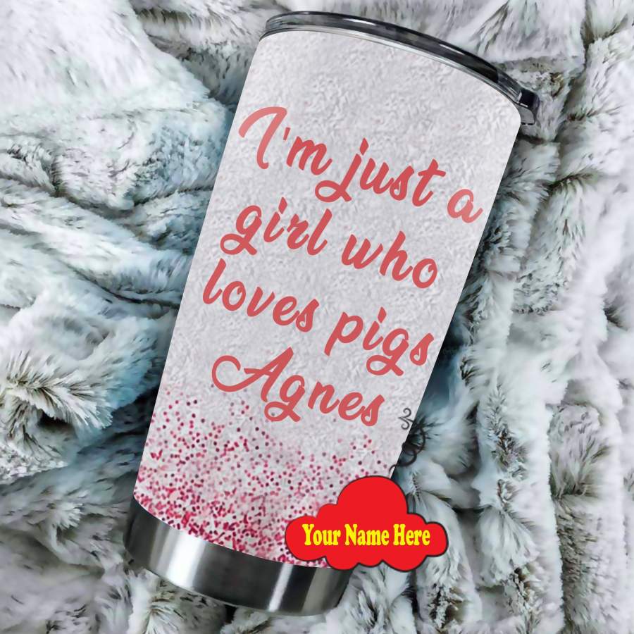 Pig I’M Just A Girl Who Loves Pigs Personalized Name Stainless Steel Insulated Tumbler Cups