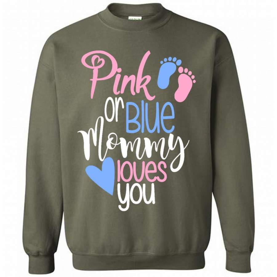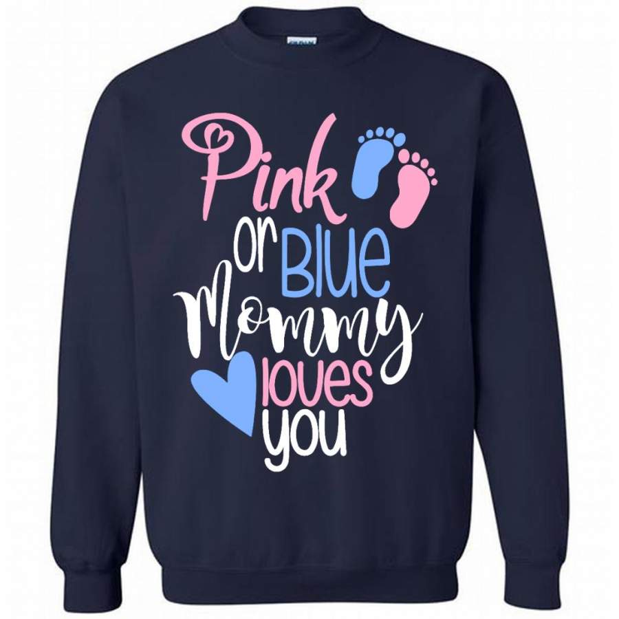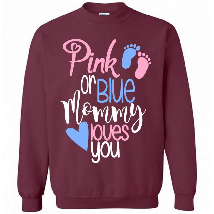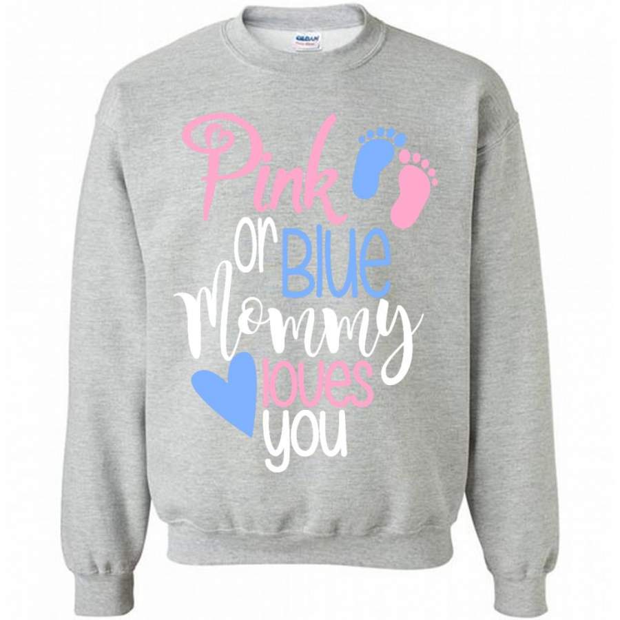 Pink Or Blue Mommy Loves You – Gildan Crewneck Sweatshirt