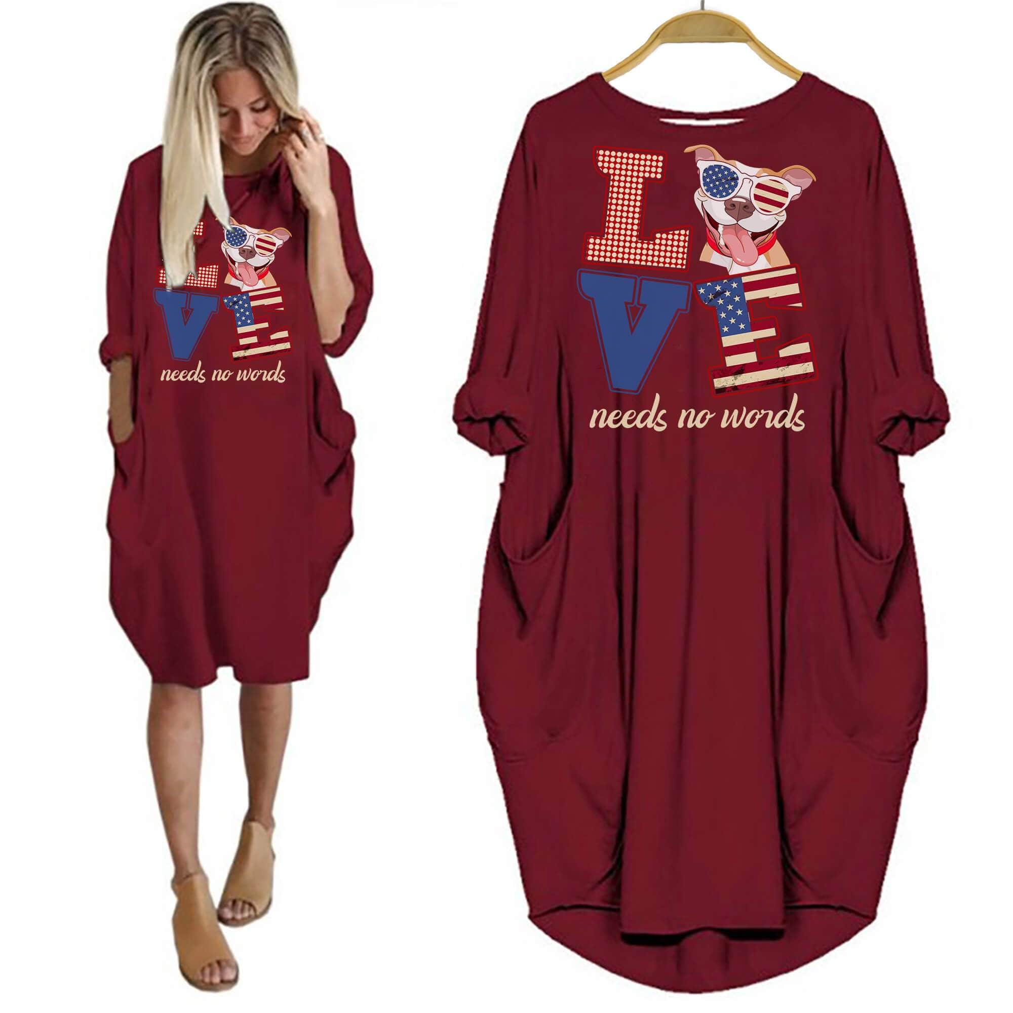 So whether you're looking to show off your own name or create a personalized gift for someone special, LateAndLow Store has got you covered. Start designing your own custom Pitbull Shirt Love Needs No Words Women Dress For Her print-on-demand product today, and let us bring your vision to life!
