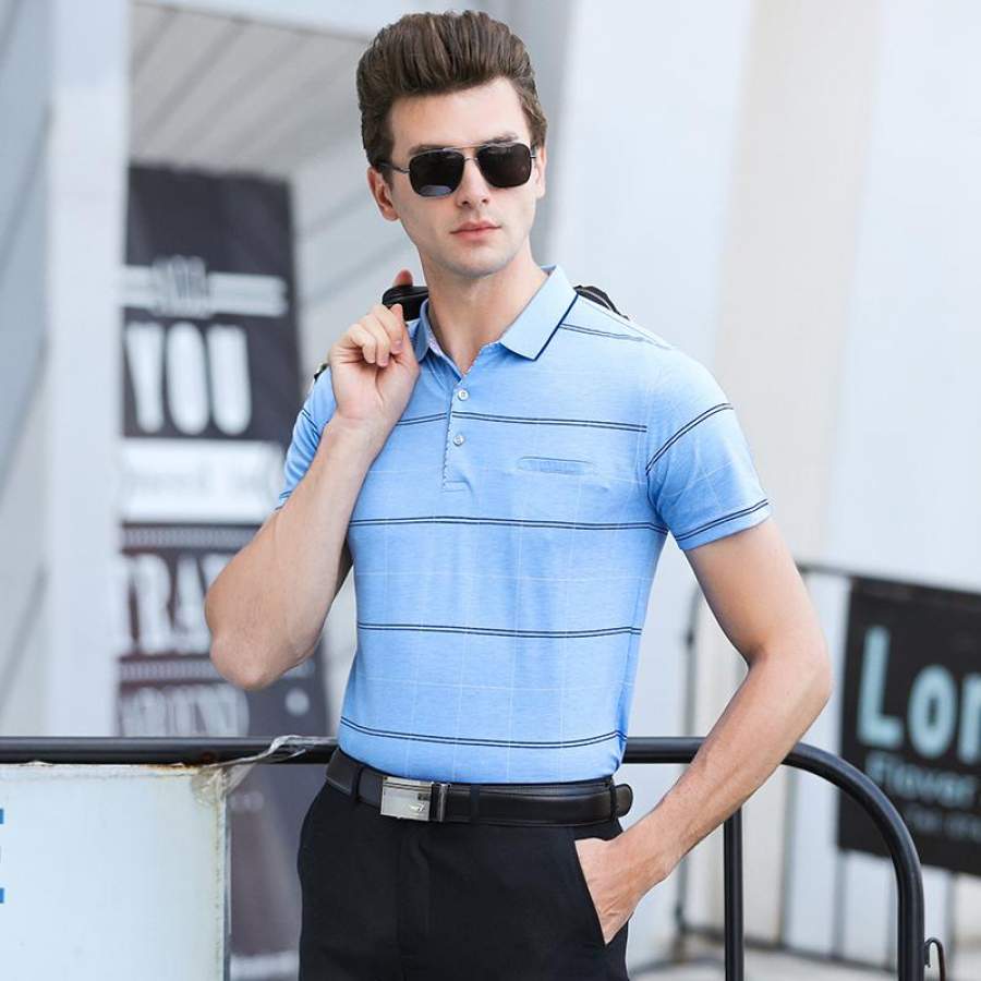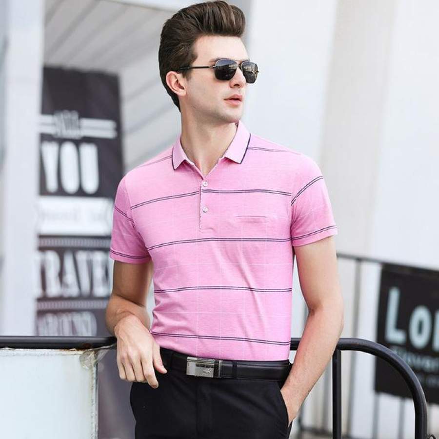 Polo Shirt Men Striped Slim Fit Men’s Polo Shirt Short Sleeve Business Summer Mens Clothing