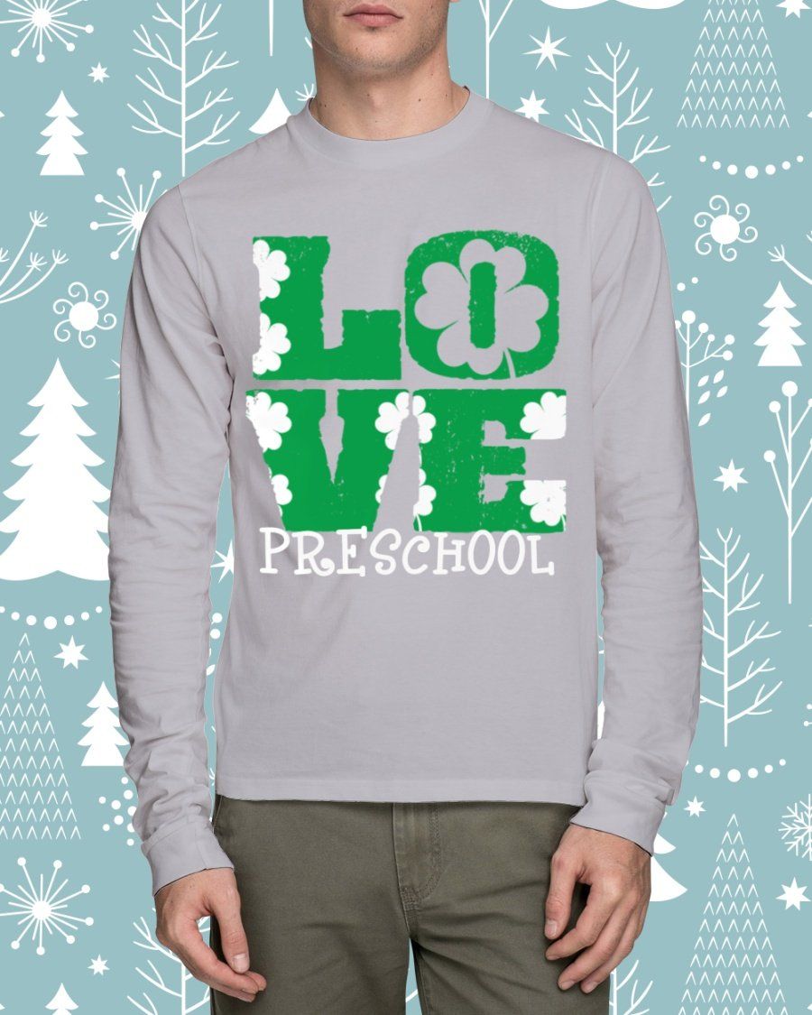 Preschool Love White Clover St Patrick’s Day Gift For Teacher Unisex Long Sleeve