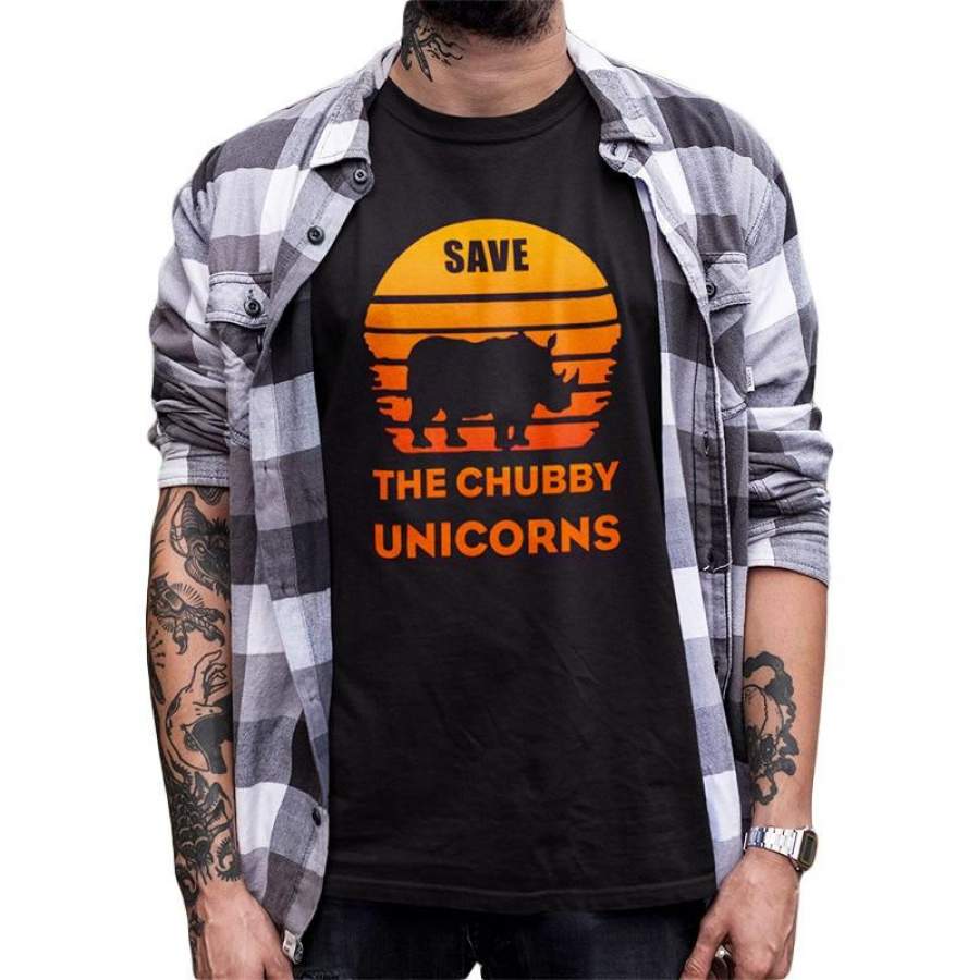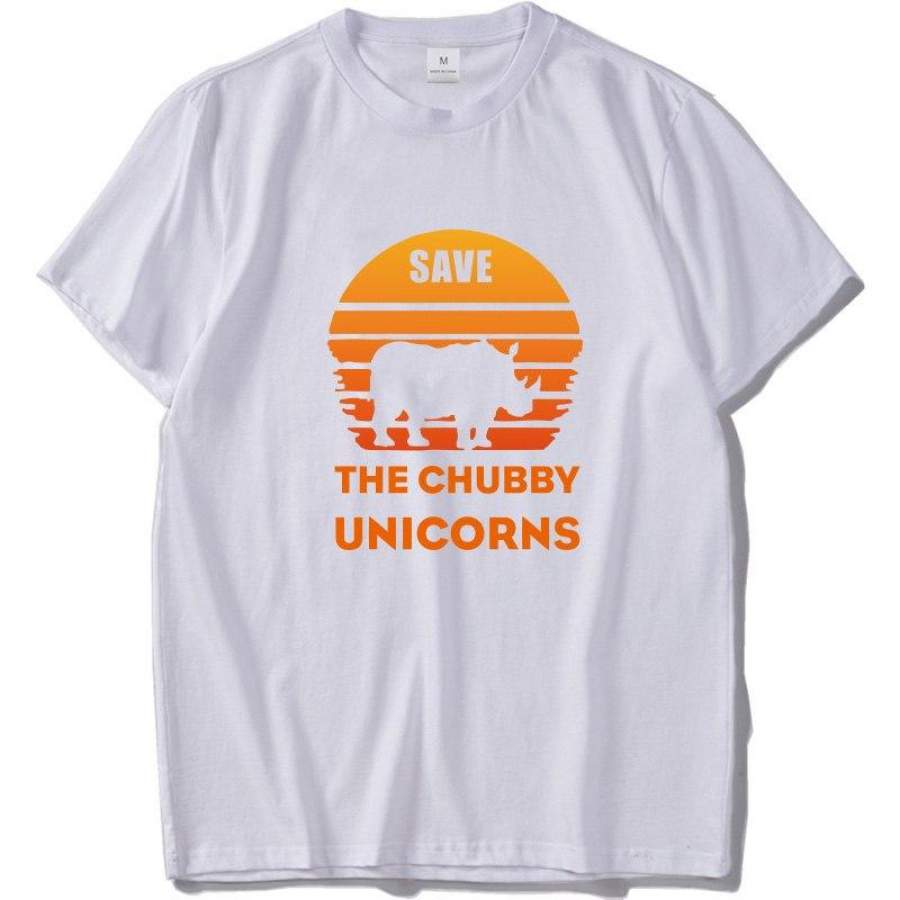 Protect rhinoceros Tshirt Save Chubby Unicorns Men T-shirts Love Ecosystem Cotton High quality Camiseta Black White Tops